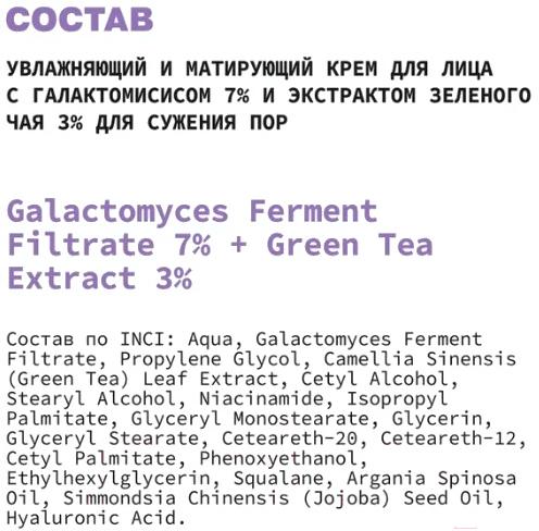 • Активные ингредиенты экстракт чая (зеленого), экстракт галактомисиса