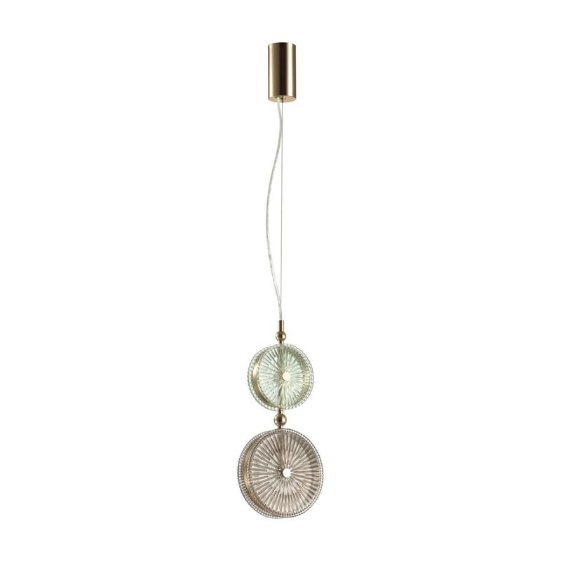 Линия светильников Caramella получила своё название благодаря сходству с карамельными конфетами. В ней сочетаются стекло нежных пастельных оттенков, золотой металл, разнообразные паттерны стёкол и современный LED источник света. Светильники Caramella прекрасно впишутся как в современные, так и в классические интерьеры, благодаря своему изящнуму дизайну. Из подвесных и настенных светильников линии можно создавать разнообразные композиции, внося в интерьер уникальыне акценты. Материал изделия: арматура: металл, плафон: стекло, Степень защиты: IP20, Класс защиты: 1, Гарантия (месяцы): 30, Дополнительные параметры: , Способ крепления: крепление на планке