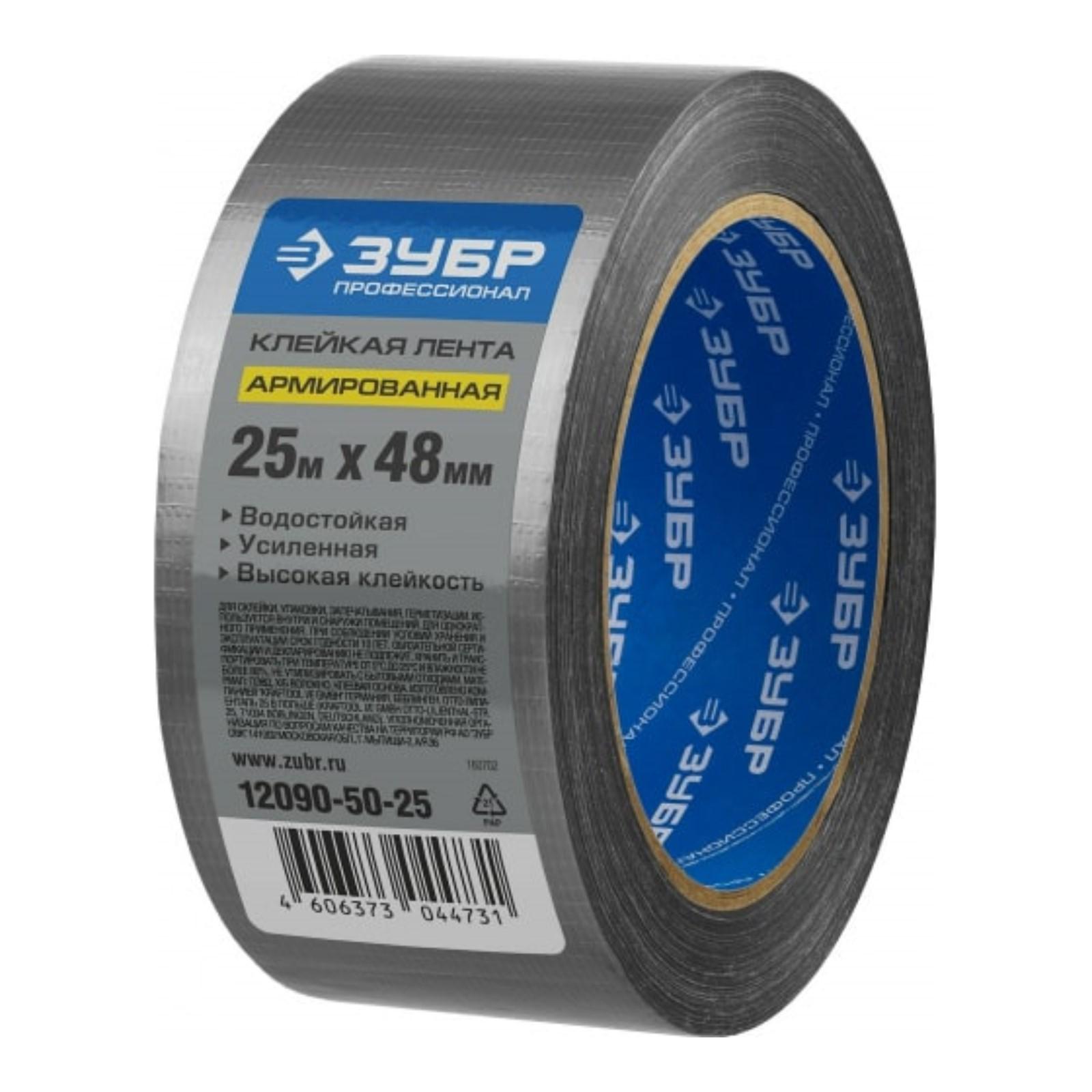 Лента армированная "ЗУБР" Профессионал 12090-50-25, серая, влагостойкая, 48 мм х 25 м