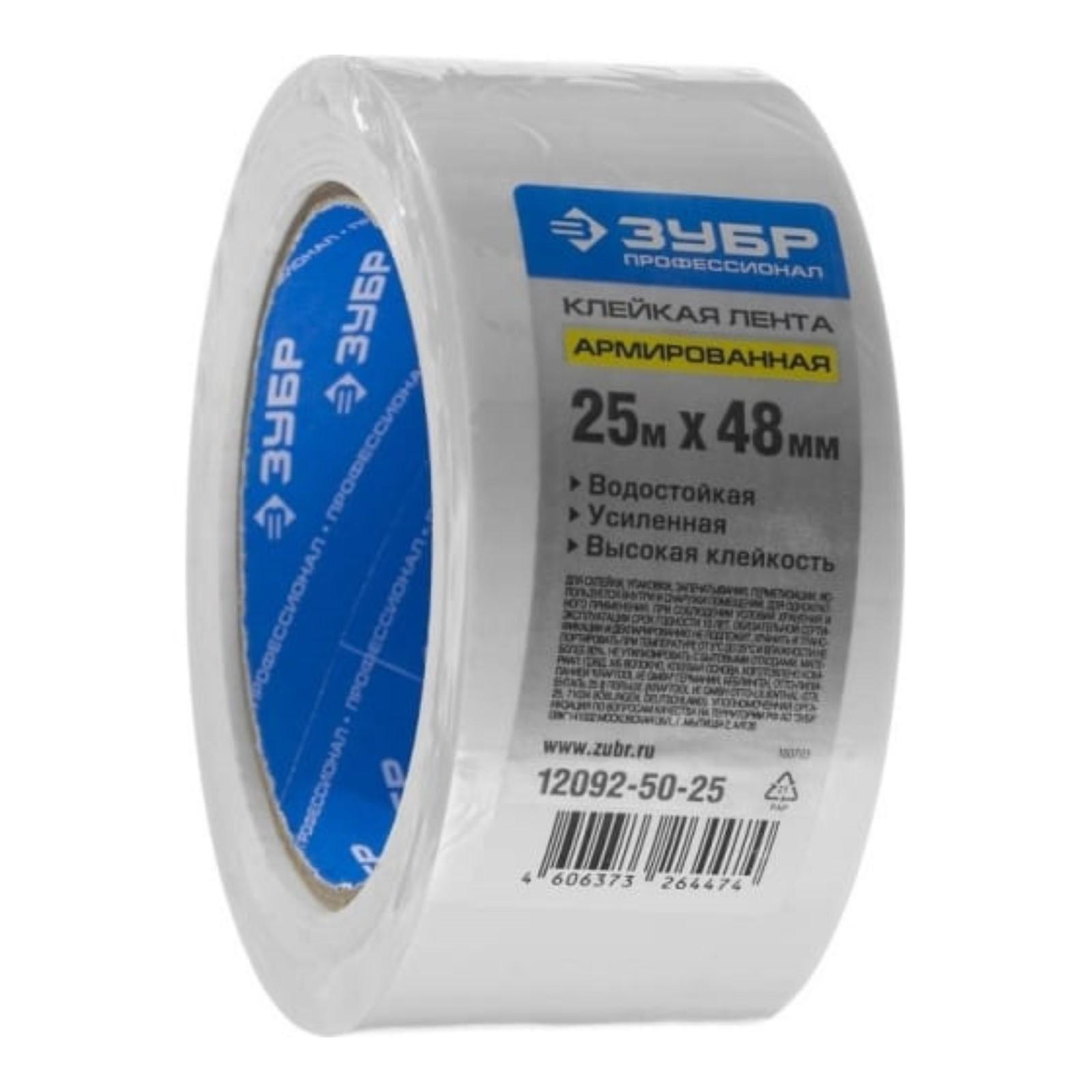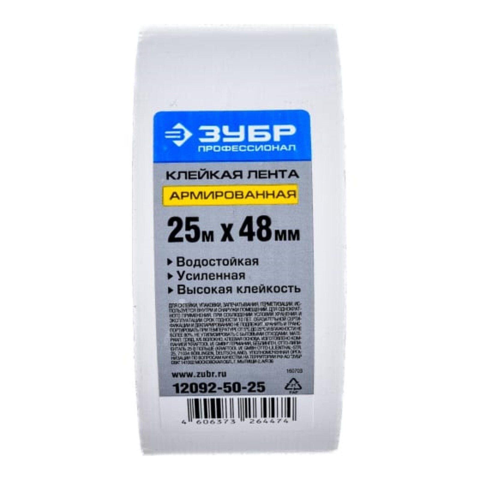 Лента армированная "ЗУБР" Профессионал 12090-50-25, белая, влагостойкая, 48 мм х 25 м