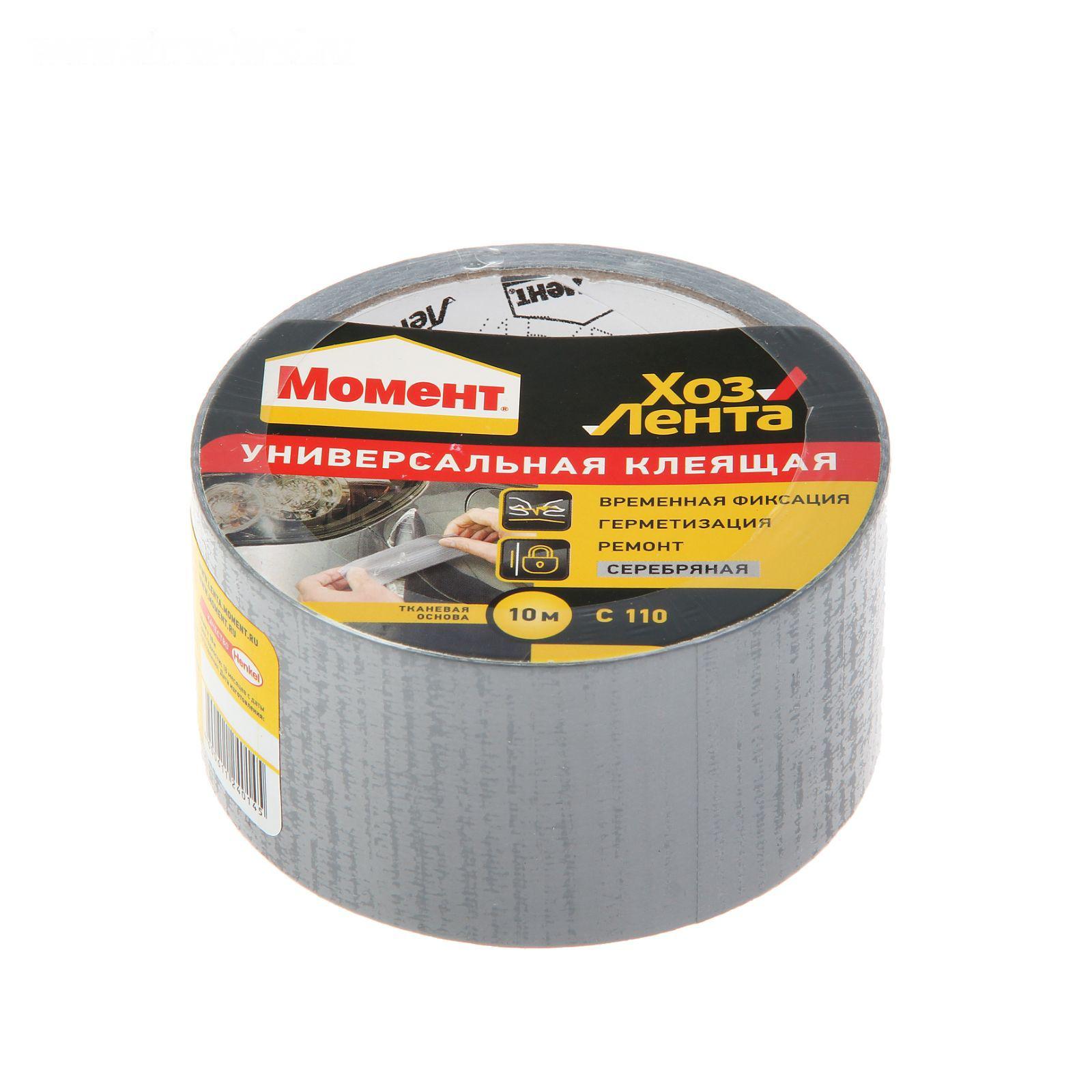 Хозлента "Момент", 10 м, клеящая, универсальная, цвет серебро