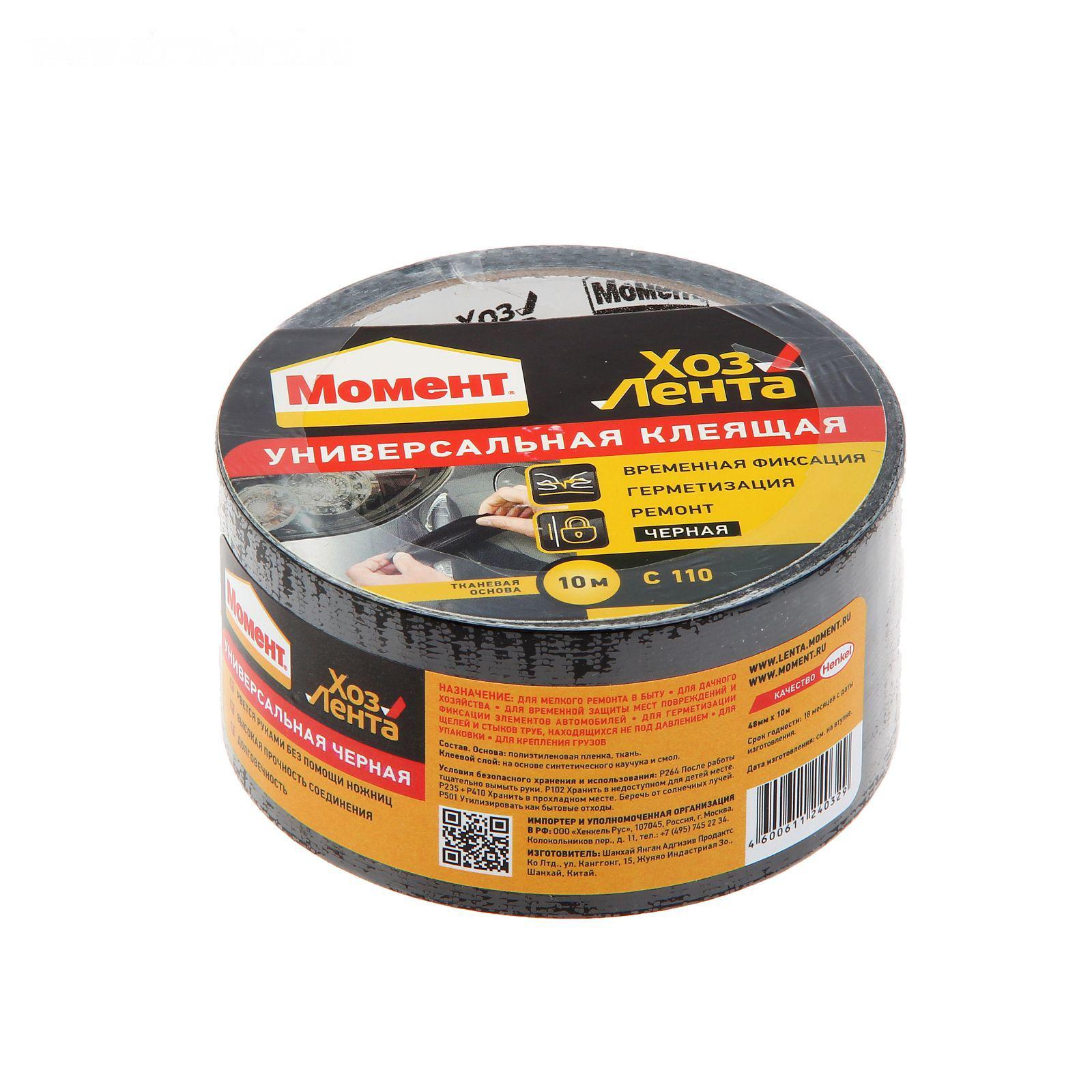 Хозлента "Момент", 10 м, клеящая, универсальная, цвет чёрный