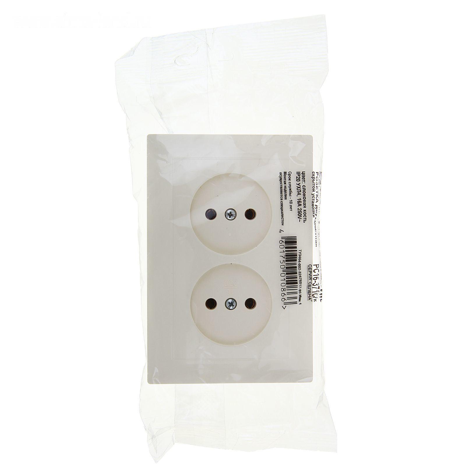 Розетка "Кунцево" Селена 8147, 16 А, 250 В, двухместная, скрытая, цвет слоновая кость