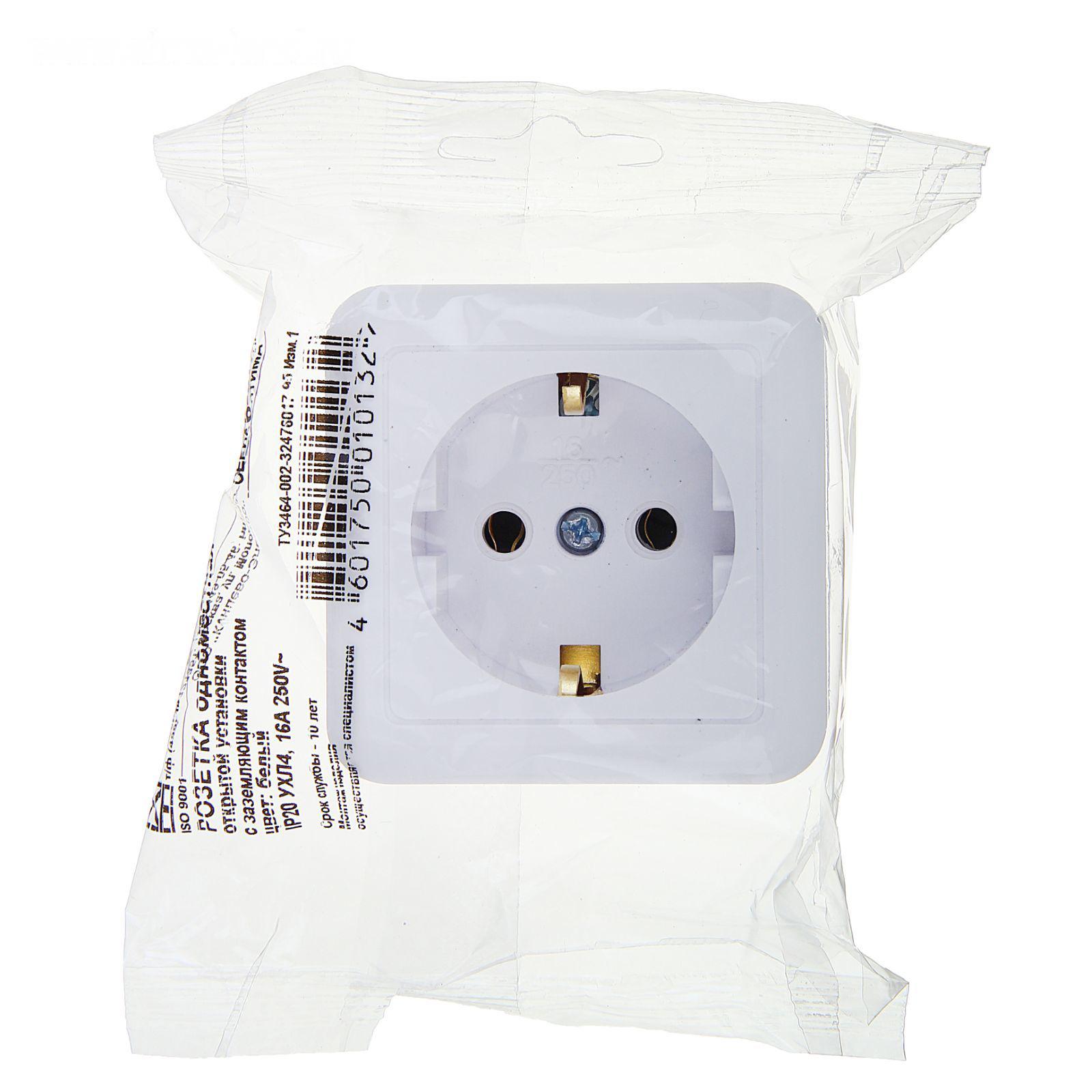 Розетка "Кунцево" Селена 8007, 16 А, 250 В, одноместная, наружная, с з/к, белая
