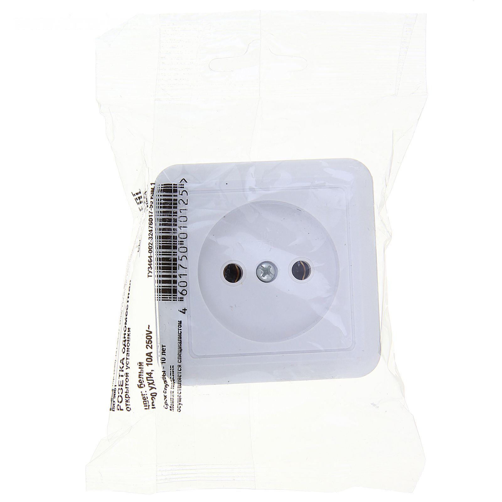 Розетка "Кунцево" Селена 8006, 10А, 250 В, одноместная, наружная, с монтаж. пластиной, белая