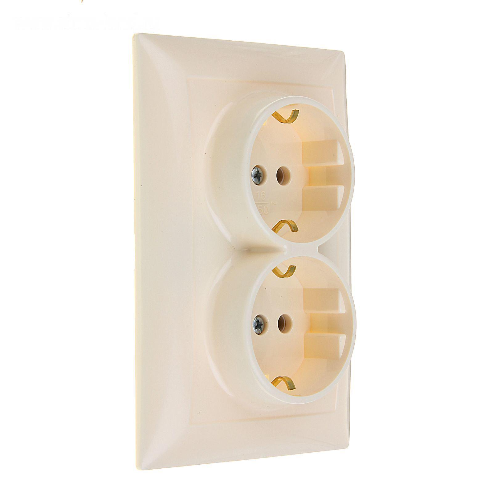 Розетка "Кунцево" Селена 8148, 16 А, 250 В, двухместная, скрытая, с з/к, цвет слоновая кость