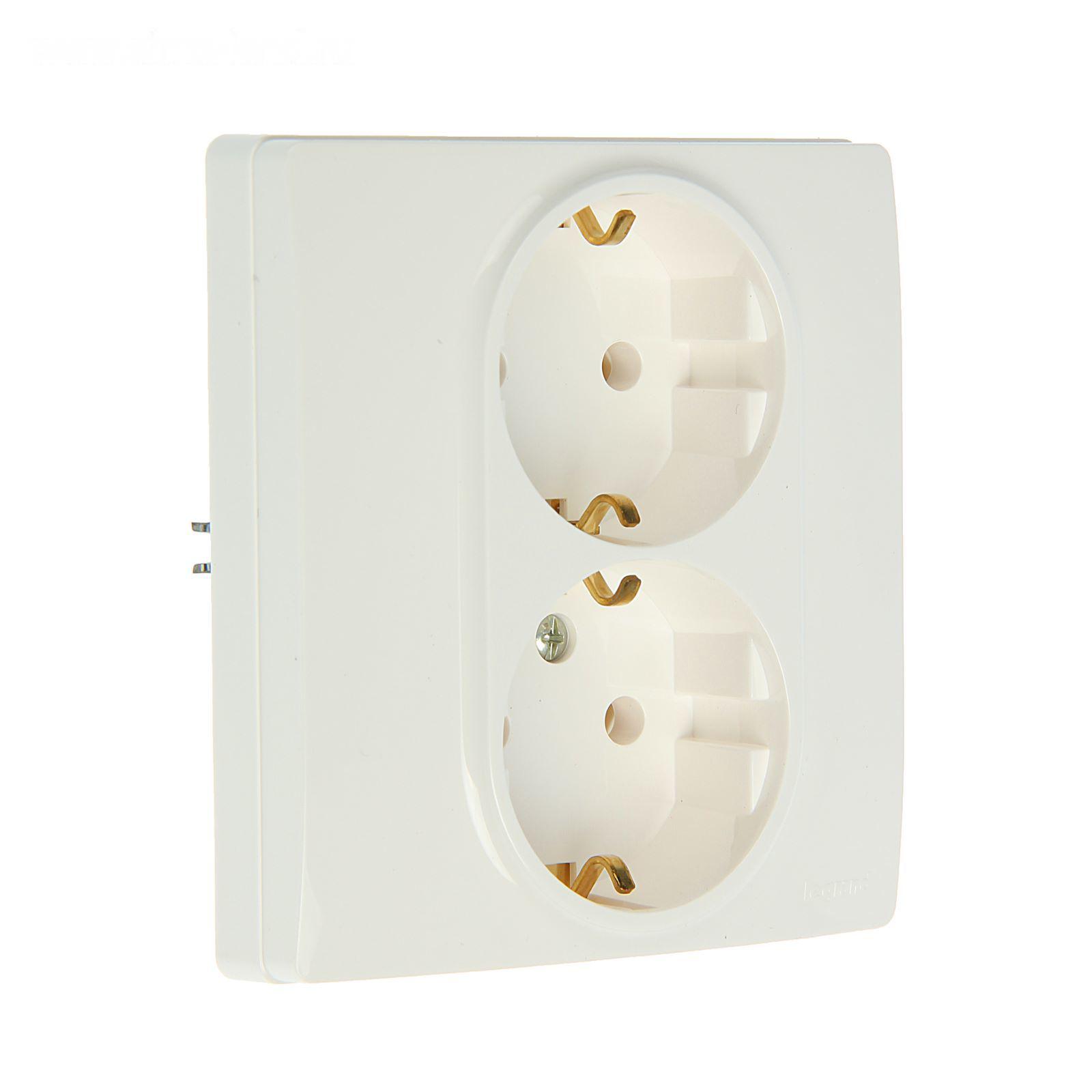 Розетка Legrand Etika 672223, 16 А, двухместная, скрытая, с з/к, белая