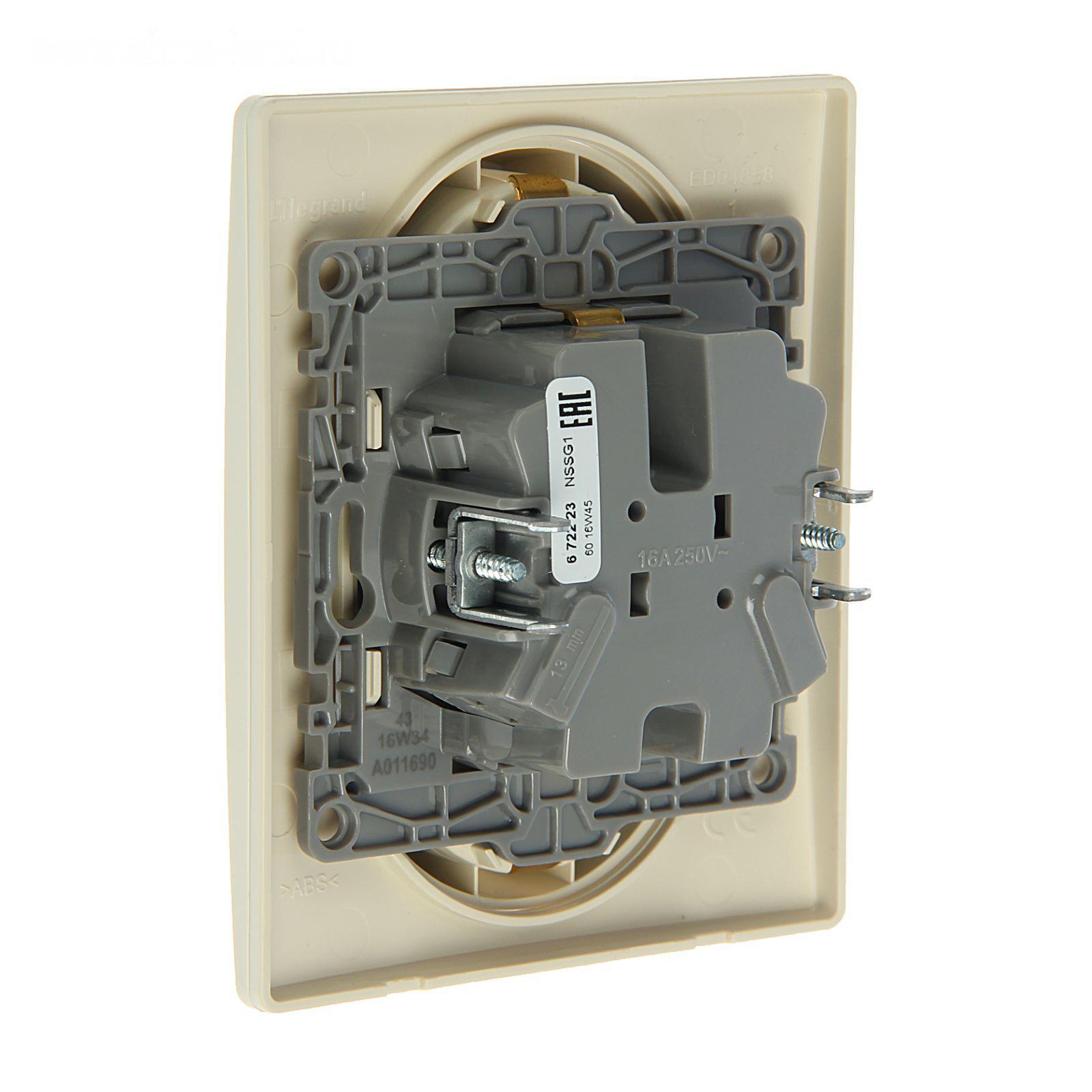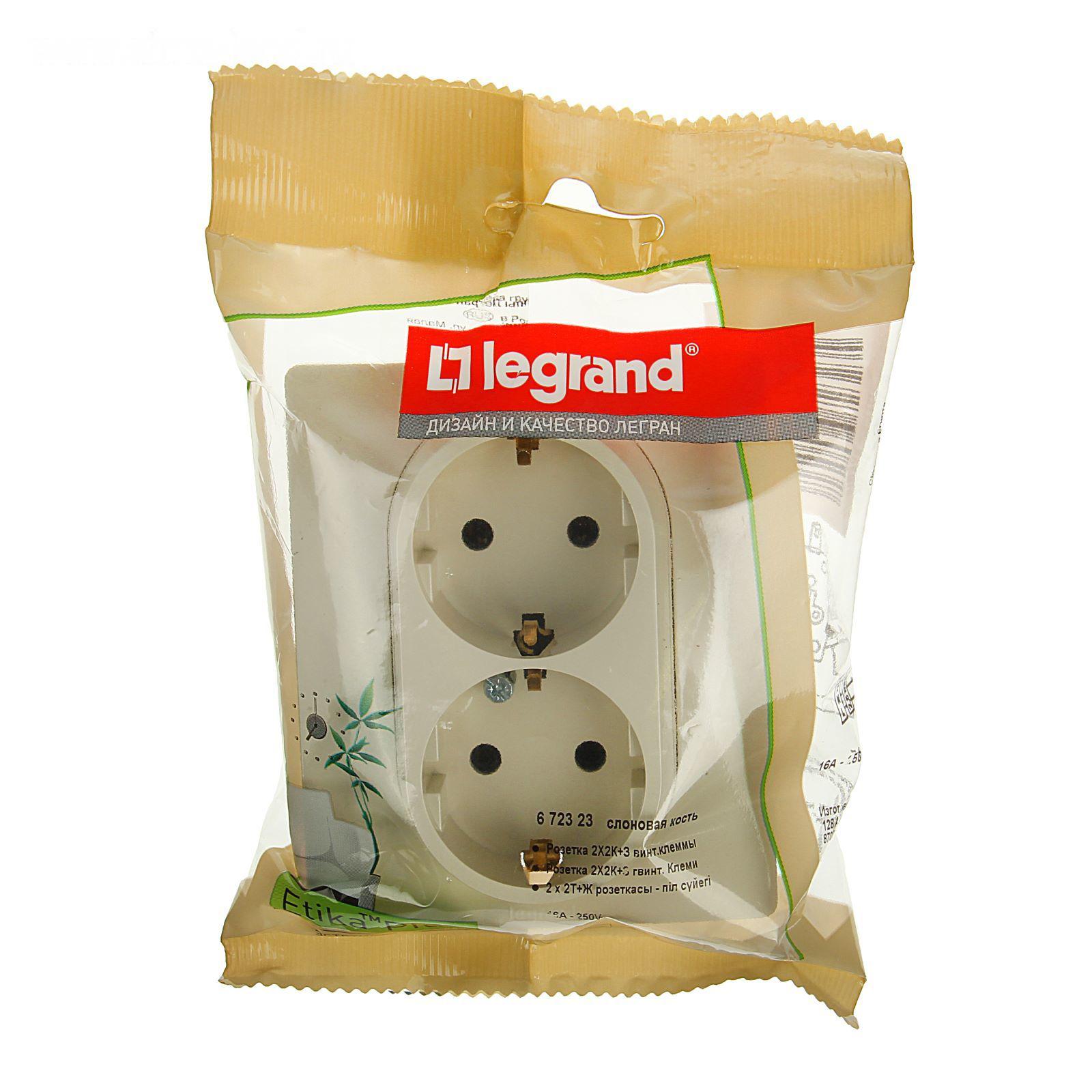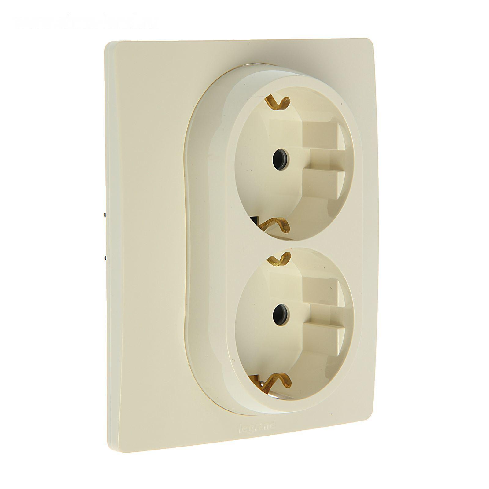 Розетка Legrand Etika 672323, 16 А, двухместная, скрытая, с з/к, слоновая кость