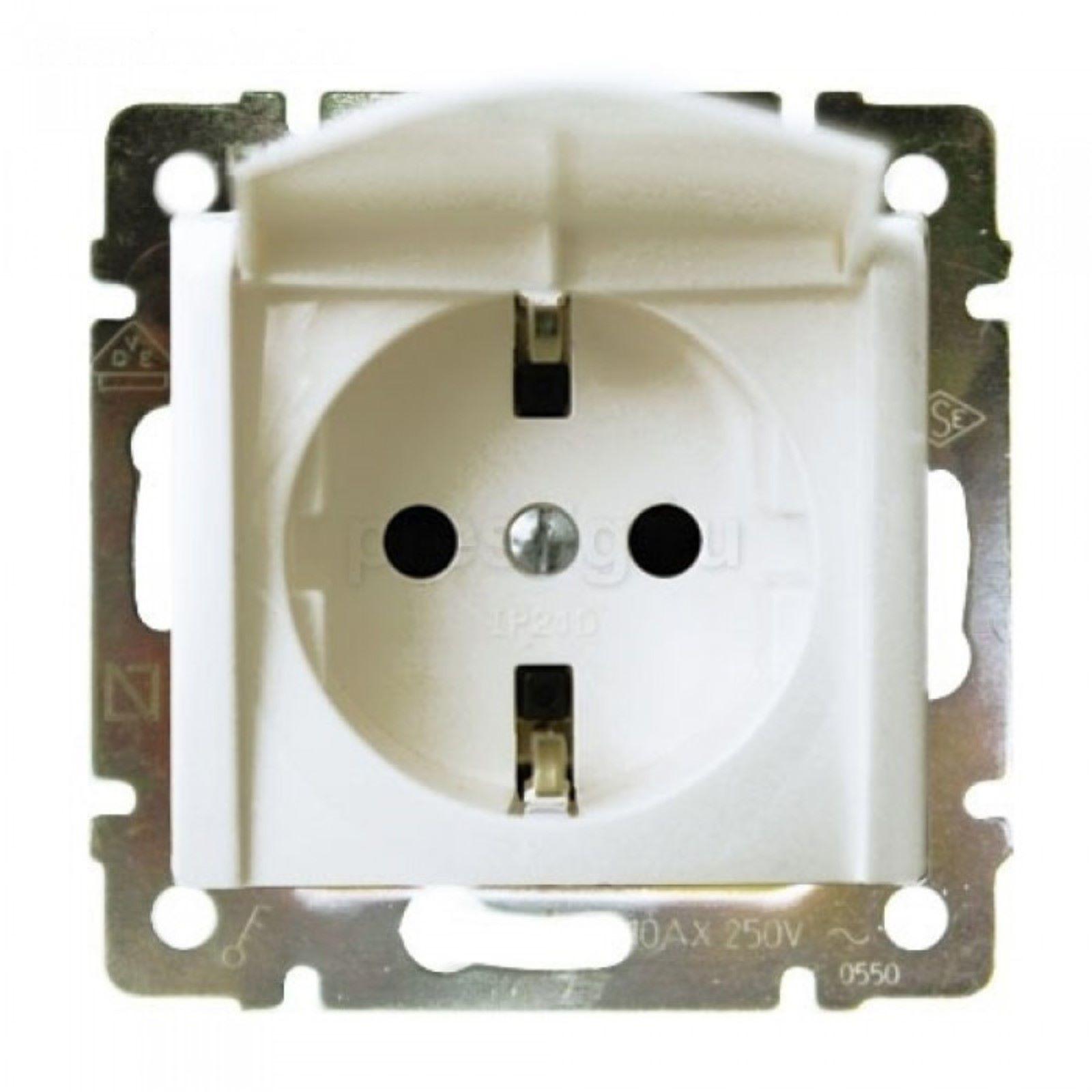 Механизм розетки 1-м СП Legrand "Valena ", с защ. крышкой, шторки, с з/к, белый, 774422