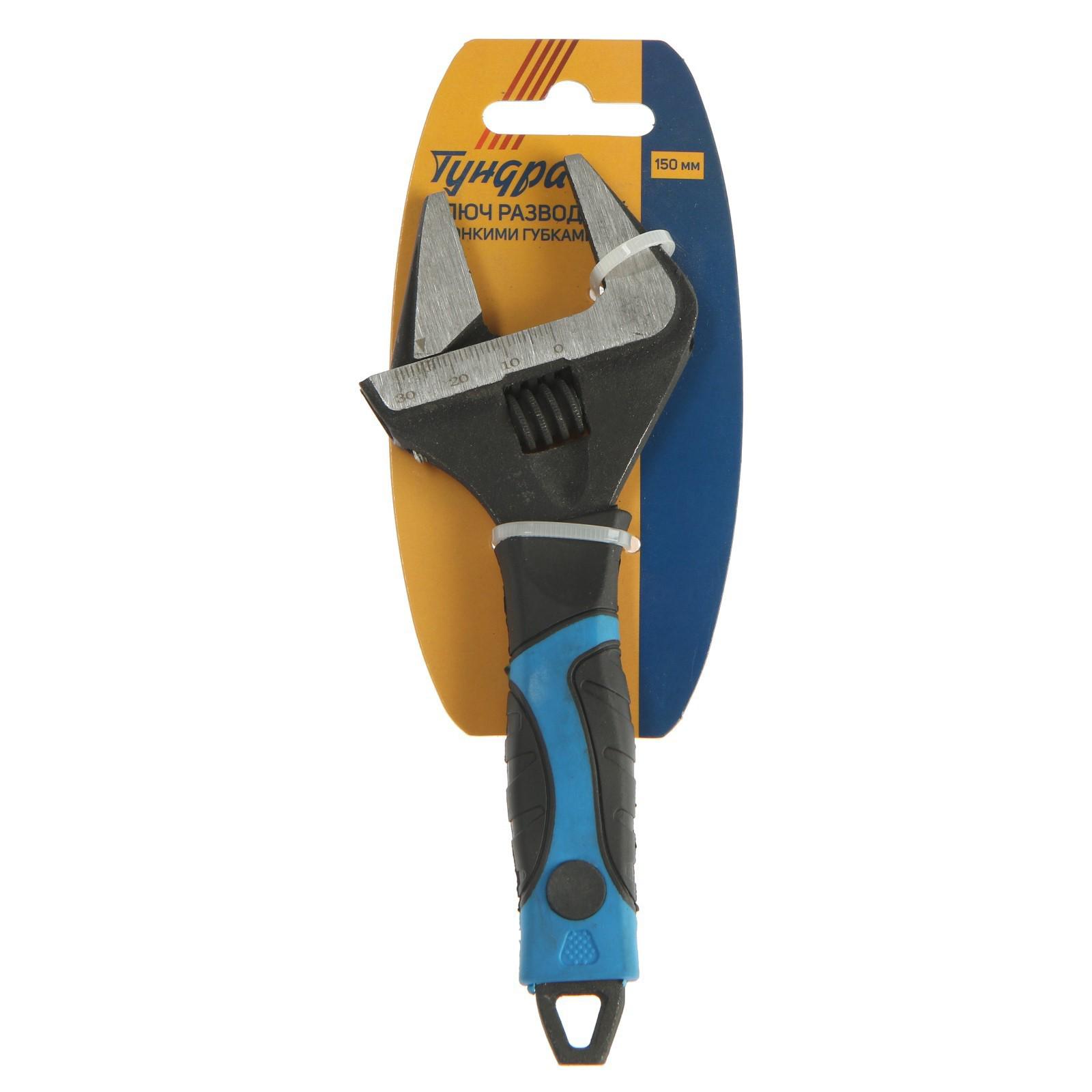Ключ разводной с тонкими губками ТУНДРА, 2К рукоятка, раскрытие губок до 34 мм, 150 мм