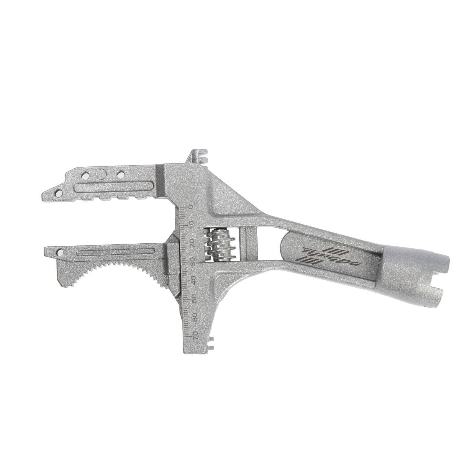 Инструмент оснащён дополнительной функцией в виде съёмных лезвий, благодаря которым увеличиваются возможности работы с ключом. Лезвия можно применять в виде ножа или скребка.