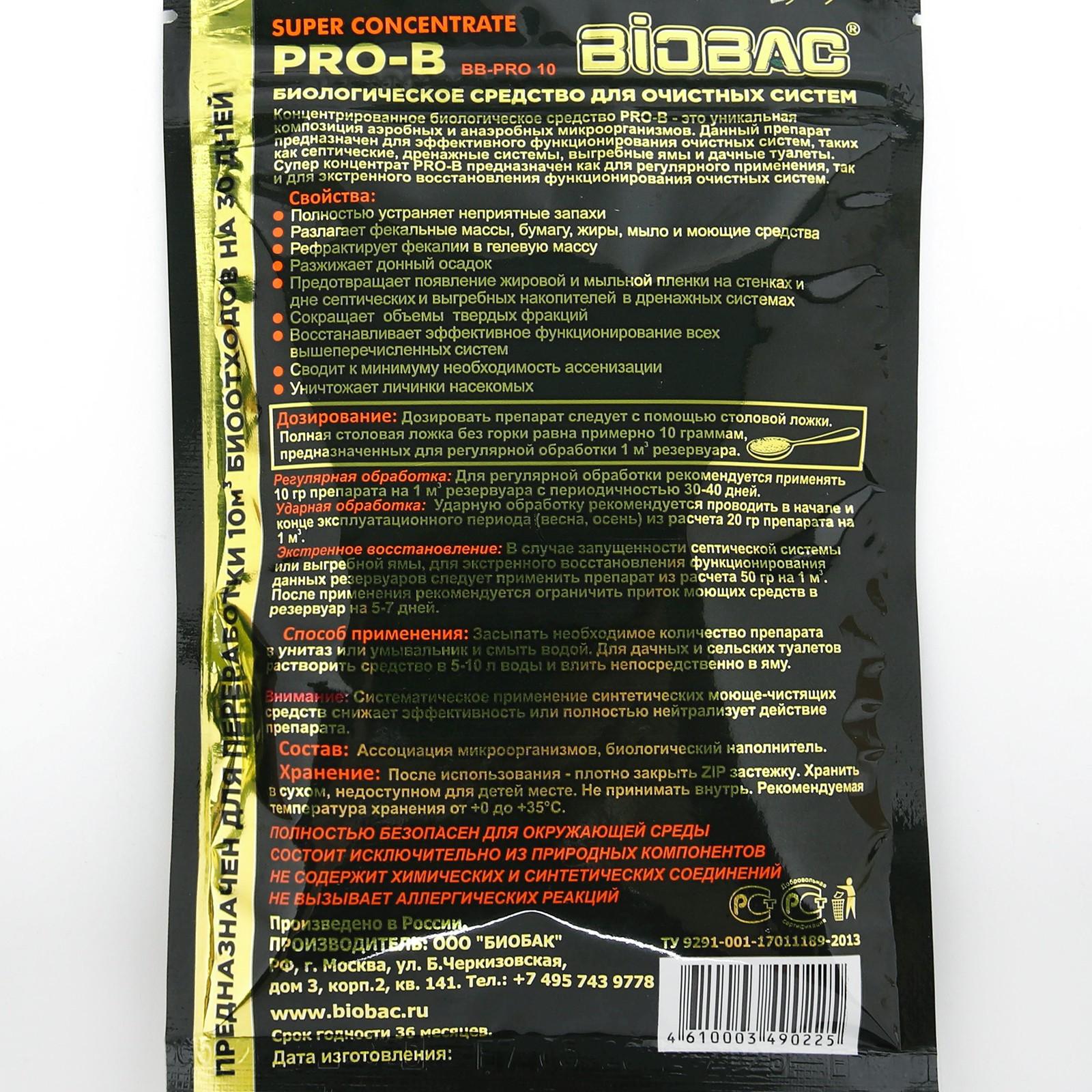 Концентрированное биологическое средство PRO-B - это уникальная композиция аэробных и анаэробных микроорганизмов. Данный препарат предназначен для эффективного функционирования очистных систем таких как септические, дренажные системы, выгребные ямы и дачные туалеты. Профессиональное средство супер концентрат PRO-B предназначен как для регулярного применения, так и для экстренного восстановления функционирования очистных систем.