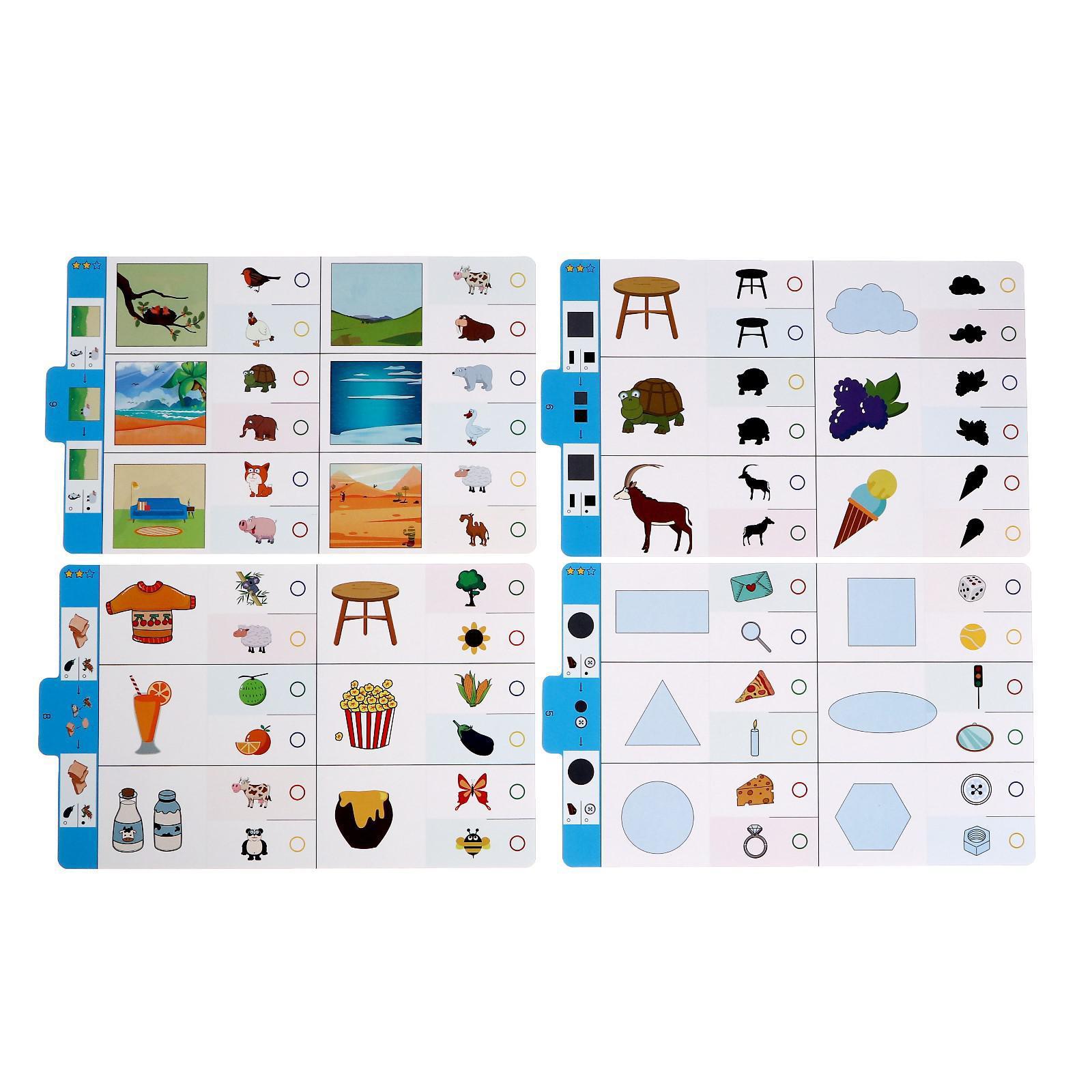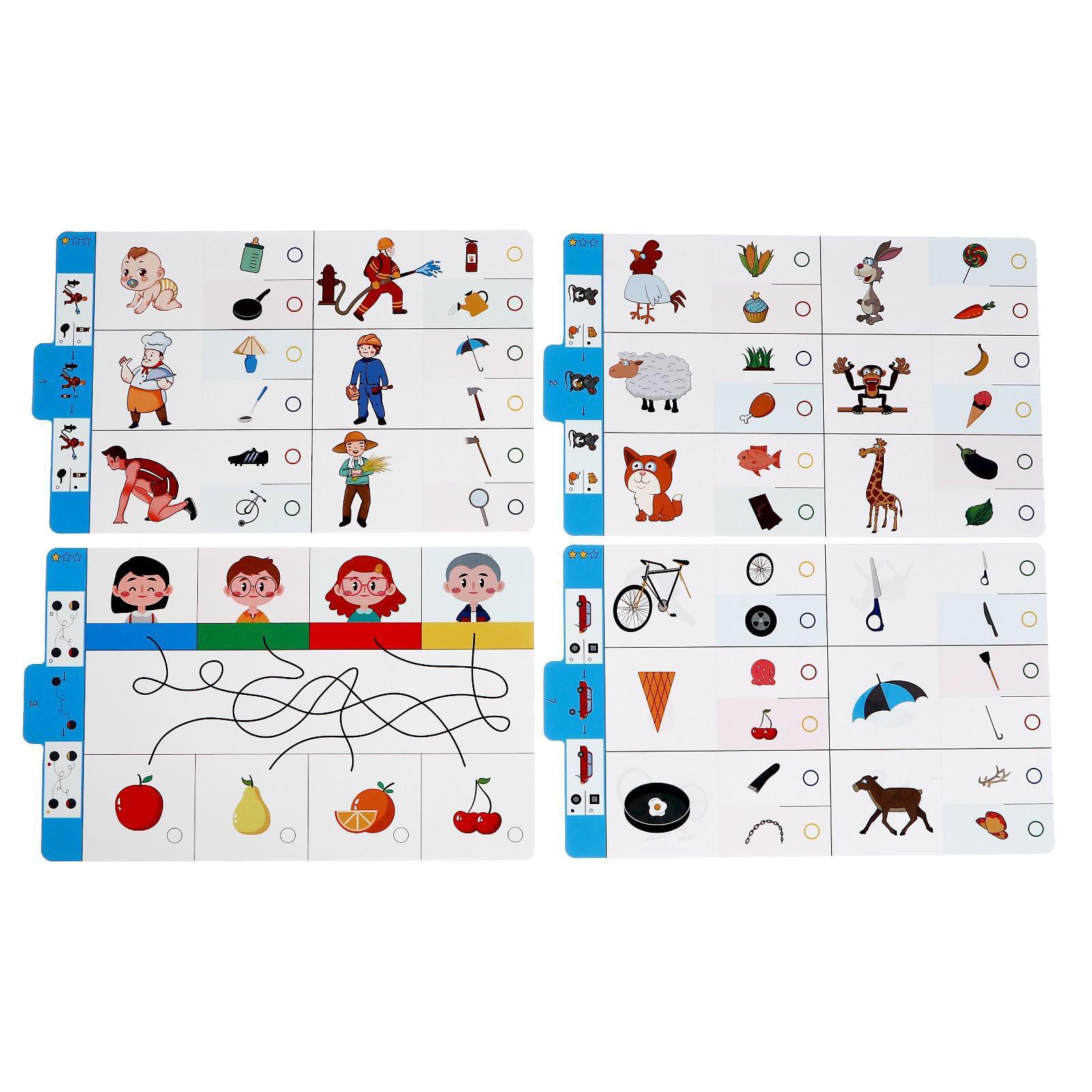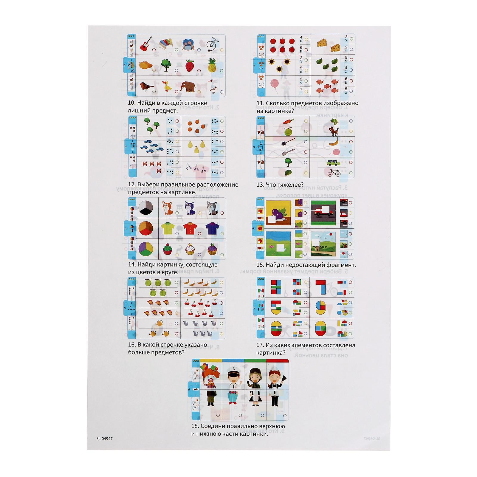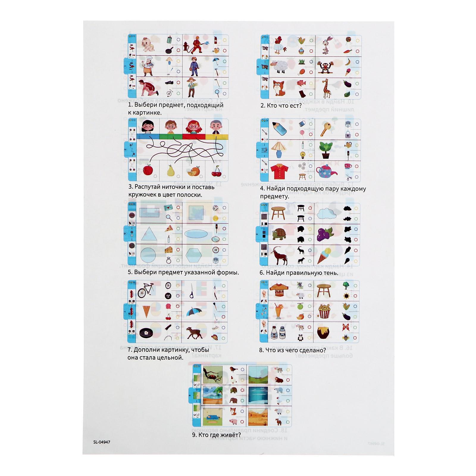 В комплект входит планшет с разноцветными пуговками, ручка-магнит и карточки с заданиями.