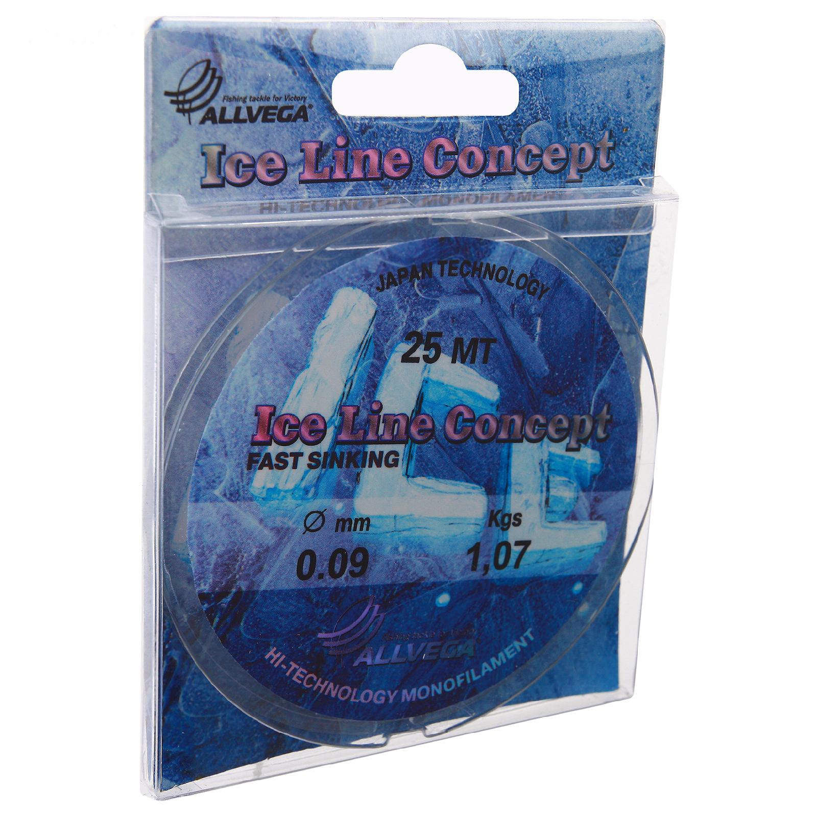 Леска монофильная ALLVEGA «Ice Line Concept», 25 м, 0,09 мм (1,07 кг), прозрачная