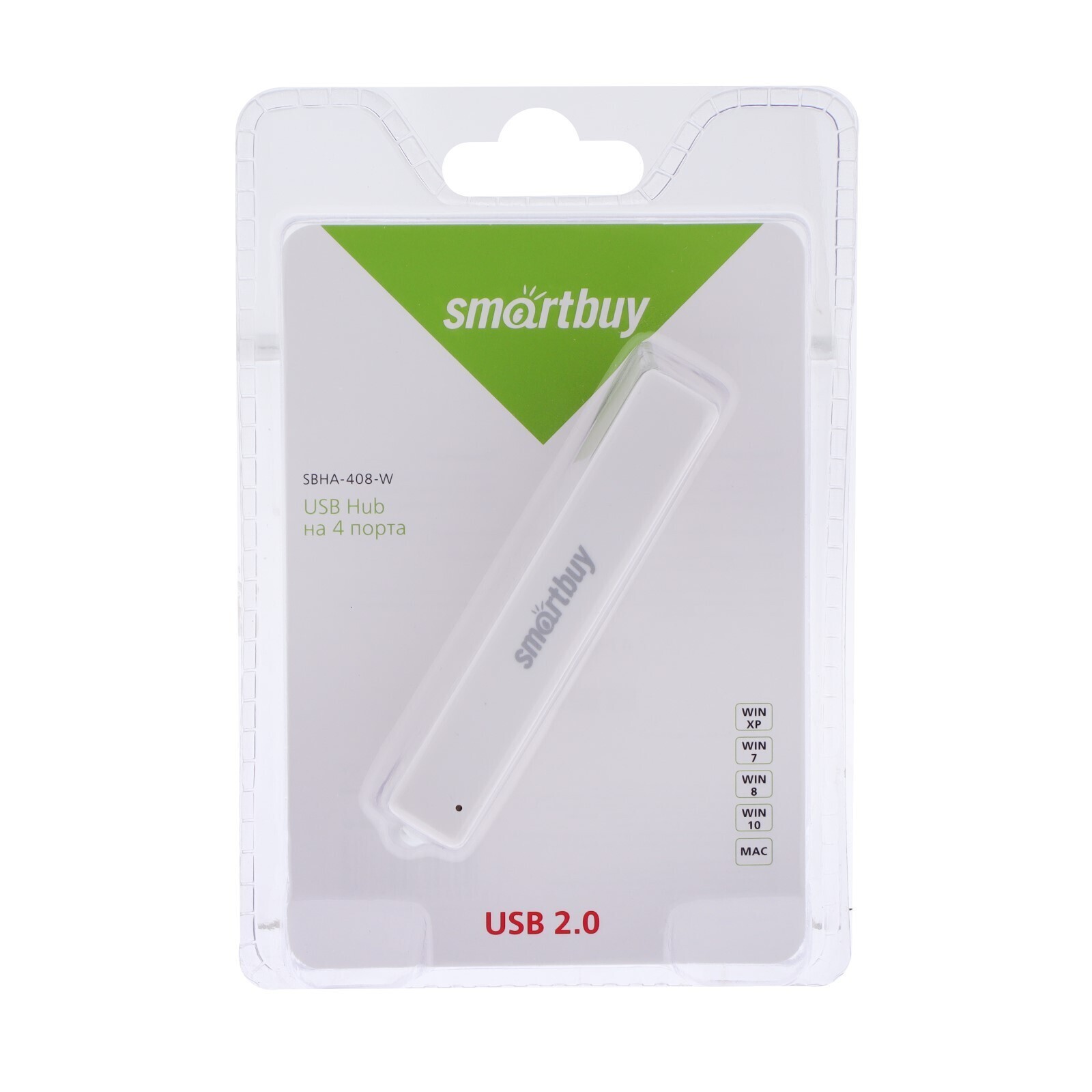 Разветвитель USB (Hub) Smartbuy 408, 4 порта, USB 2.0, белый