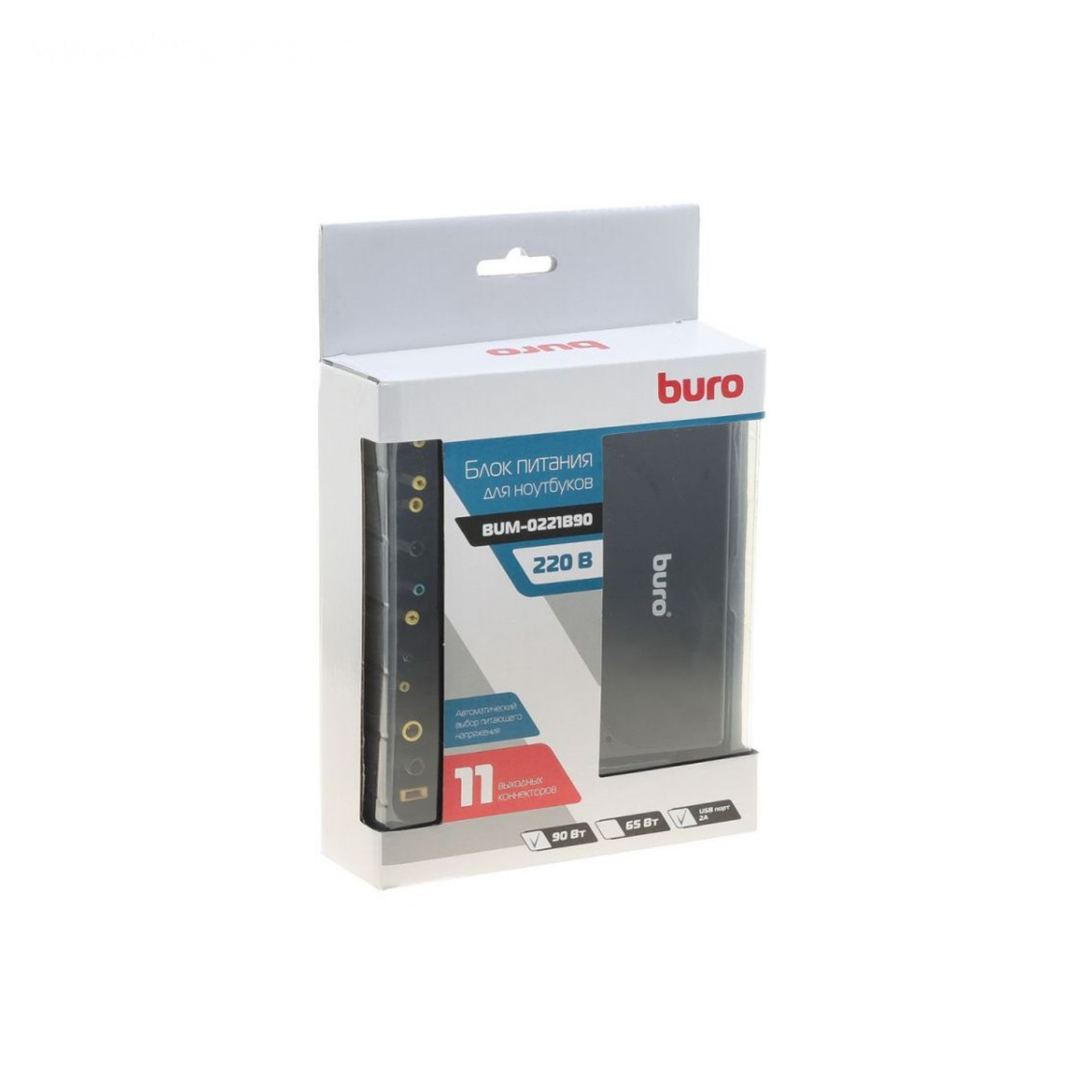 Адаптер питания Buro BUM-0221B90, автоматич., 90Вт, 12В-20В 11-переходник., 4.5A 1xUSB, 2.4A