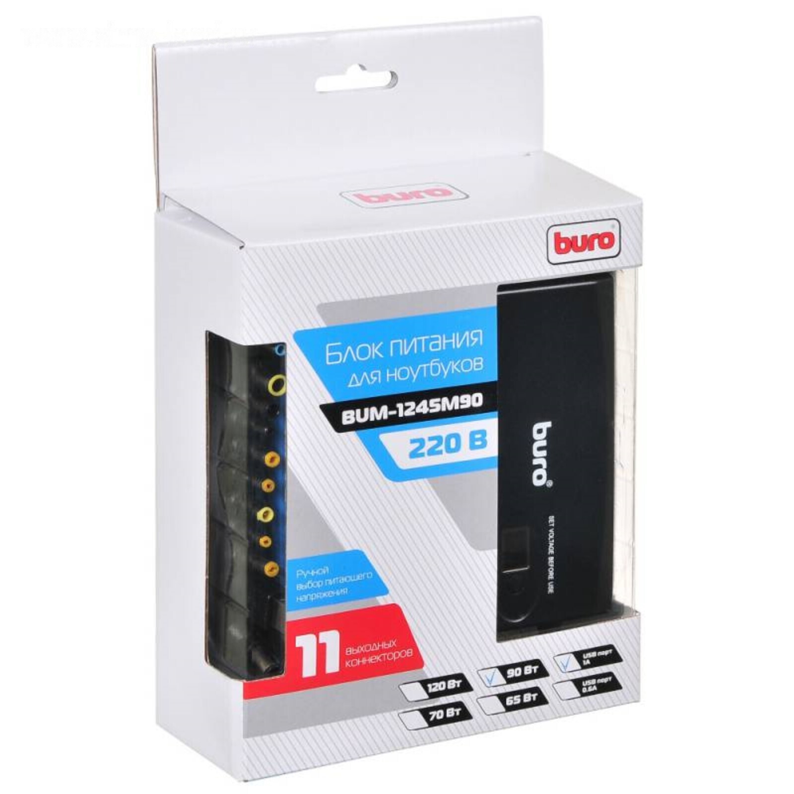 Адаптер питания Buro BUM-1245M90, ручной, 90Вт, 12В-24В 11-переходников, 3.5A 1xUSB, 1A