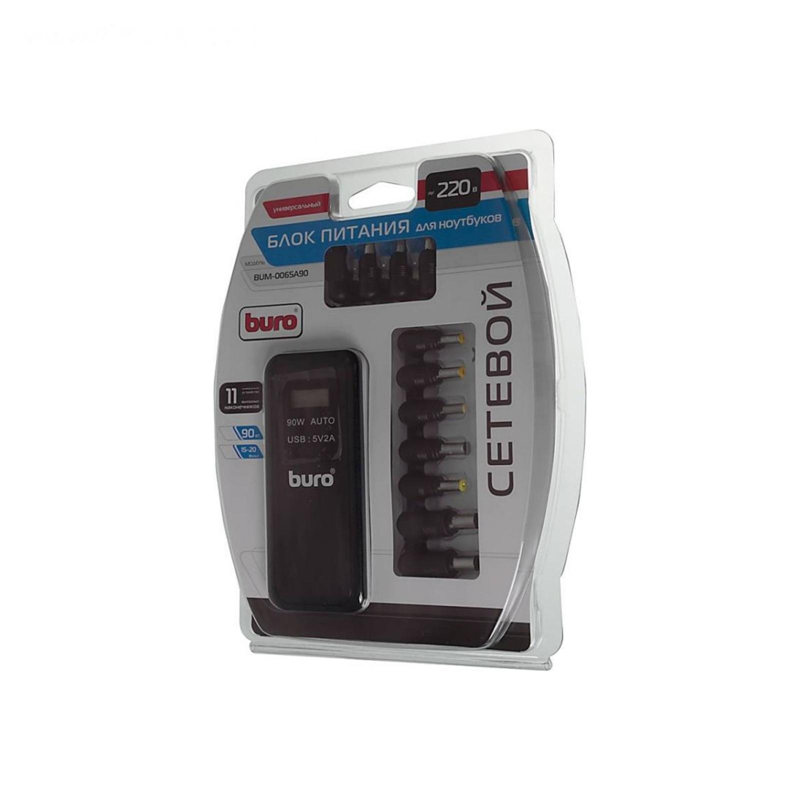 Адаптер питания Buro BUM-0065A90, автоматич., 90Вт, 12В-20В 11-переходников, 5A 1xUSB, 2.1A