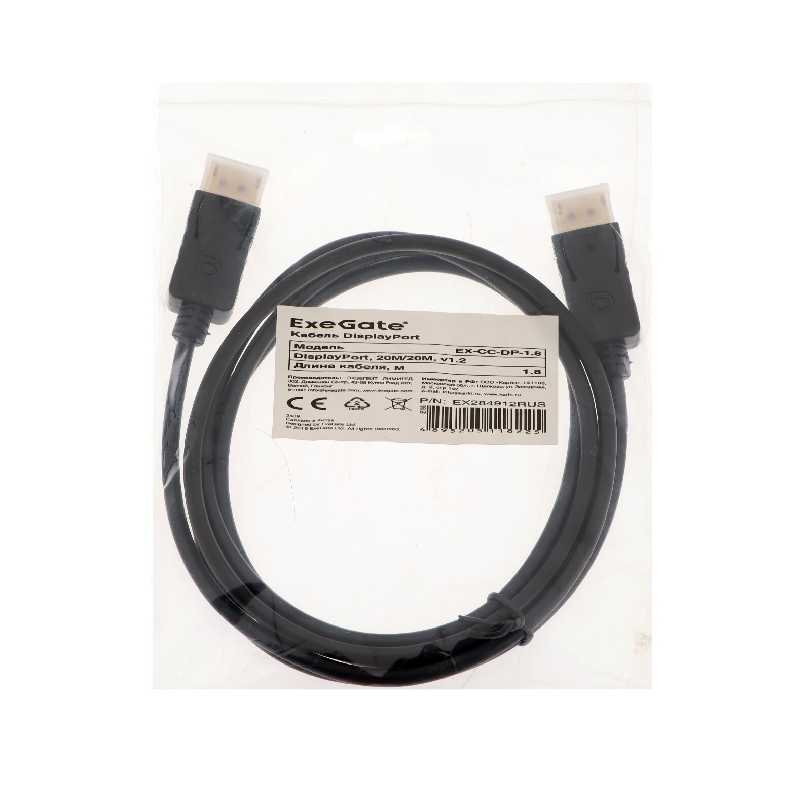 Кабель DisplayPort-DisplayPort ExeGate EX-CC-DP-1.8, v1.2, 1.8м, чёрный
