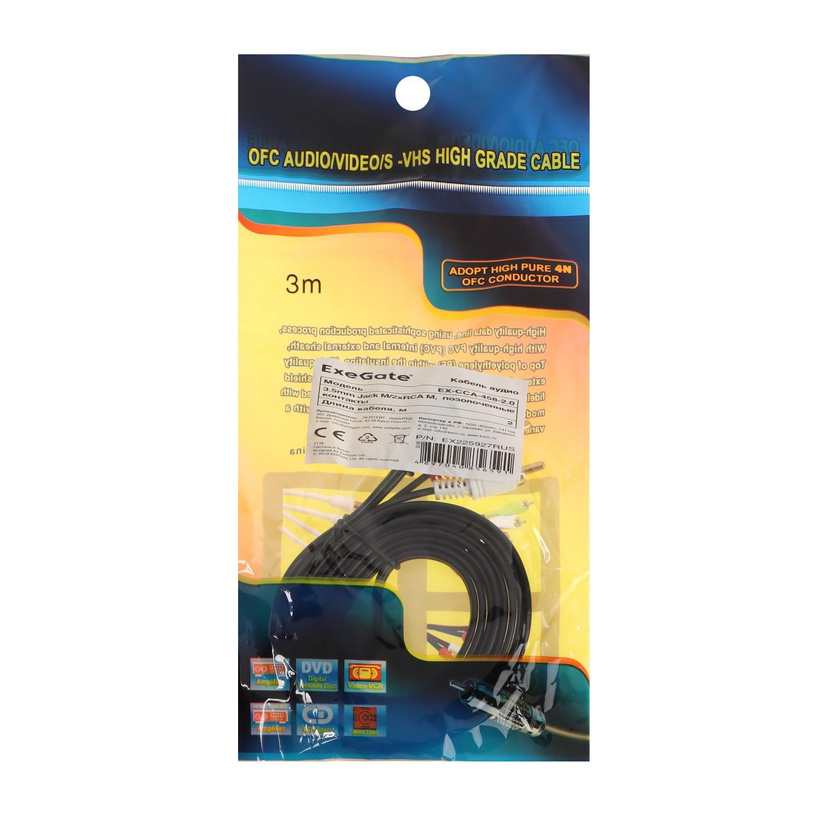 Кабель-переходник аудио ExeGate EX-CCA-458-2.0, Jack 3.5 мм(m)-2xRCA(m), 2 м, черный