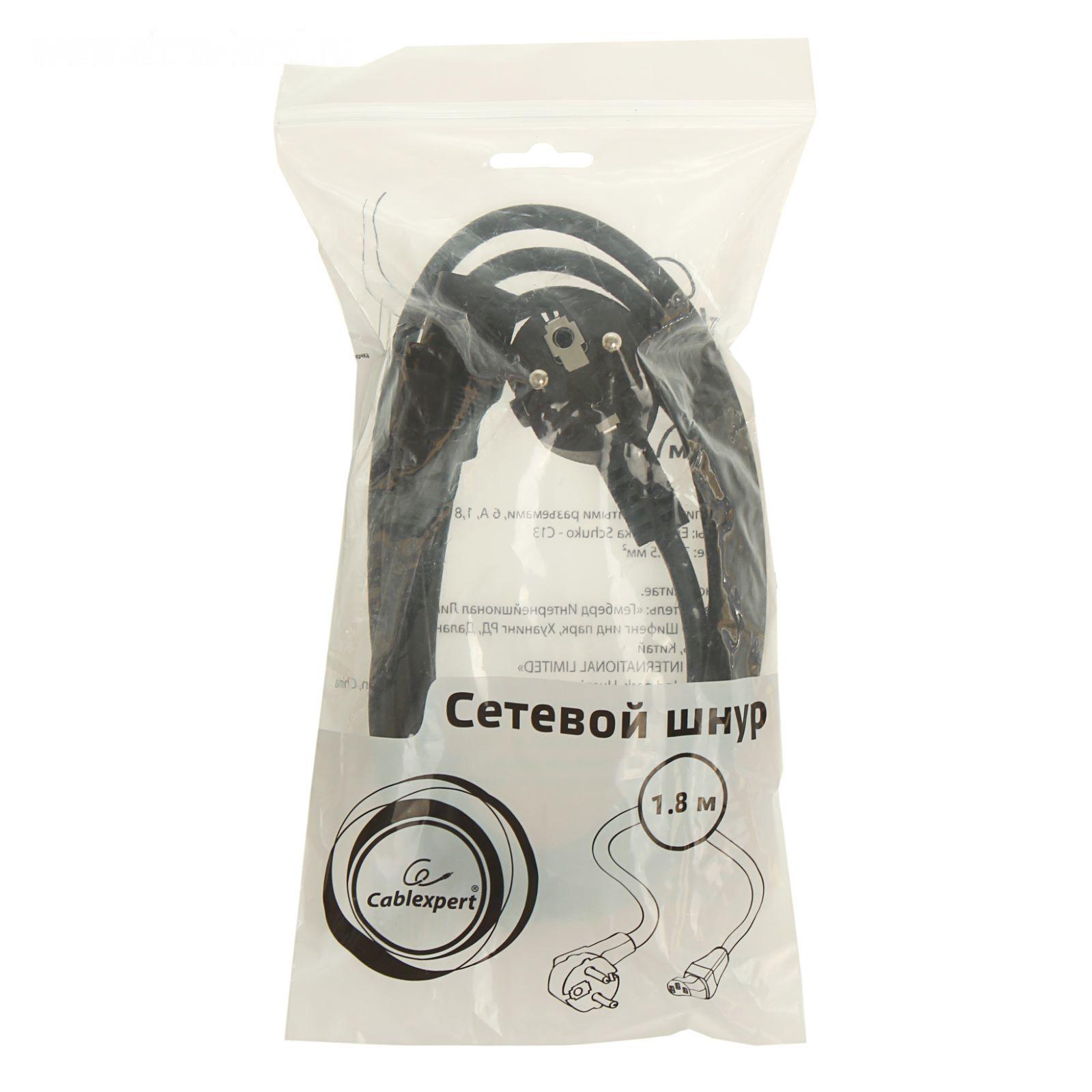 Кабель питания Cablexpert PC-186, Schuko - C13, 6 А, 1.8 м, черный