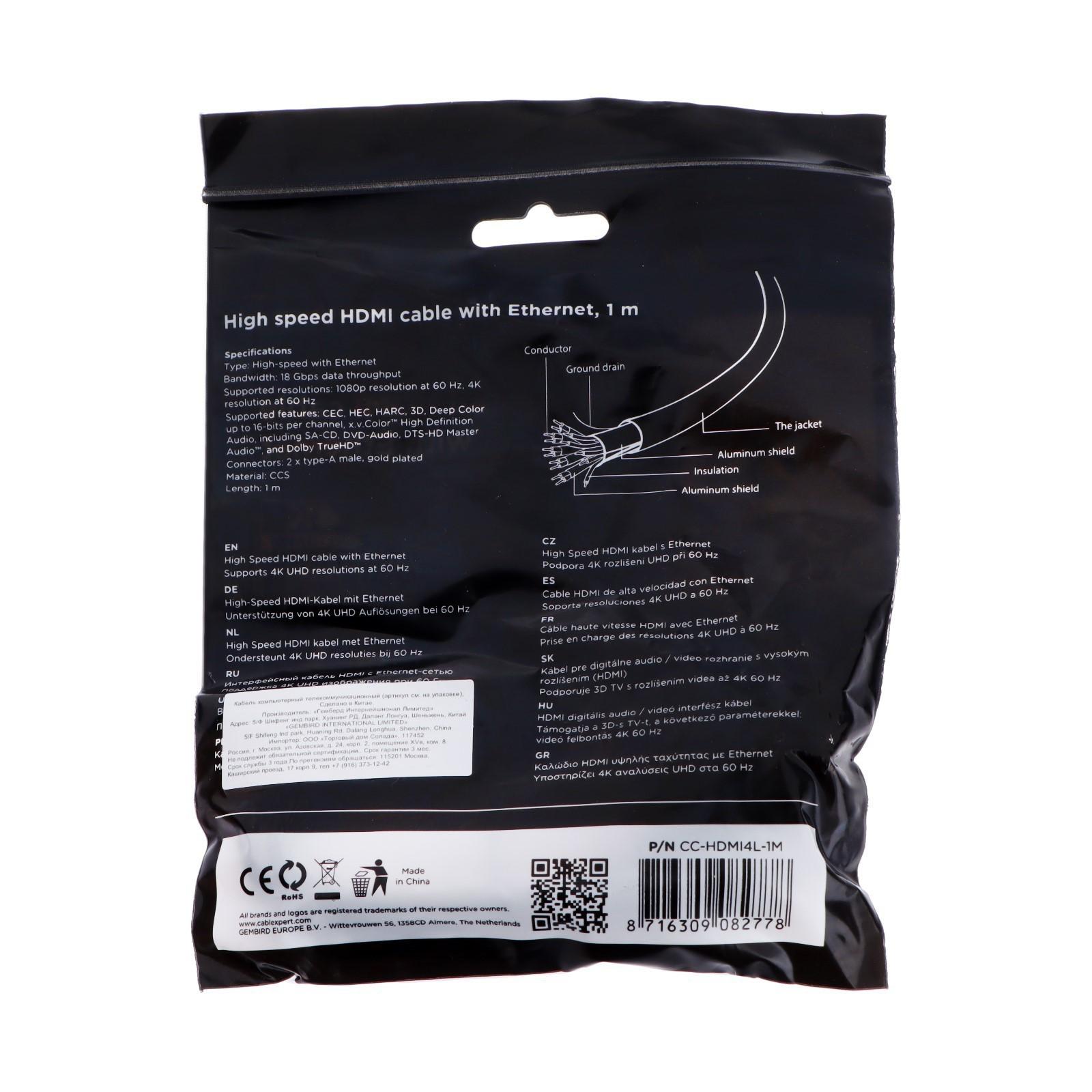 Кабель видео Cablexpert CC-HDMI4-1M, HDMI(m)-HDMI(m), вер 2.0, 1 м, черный