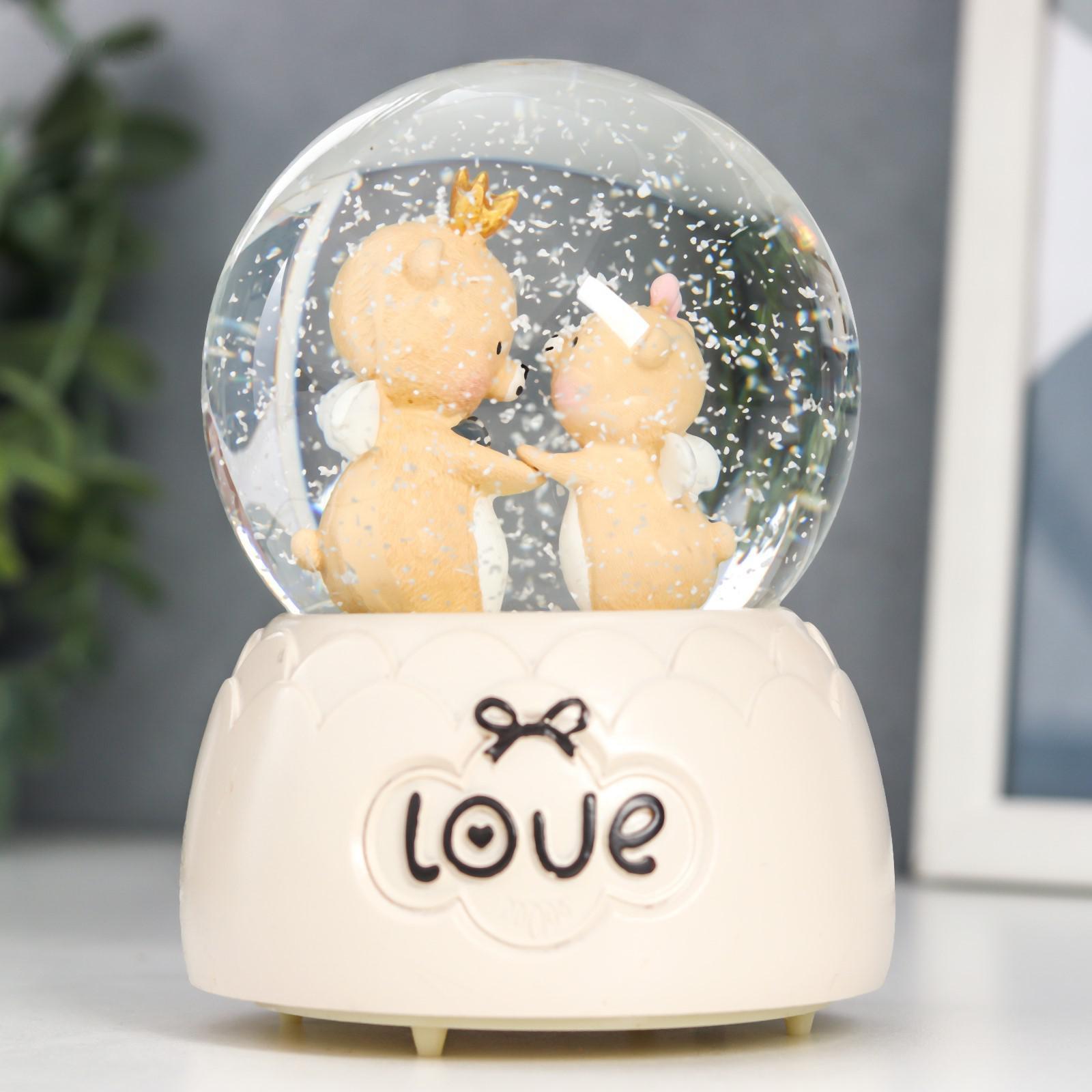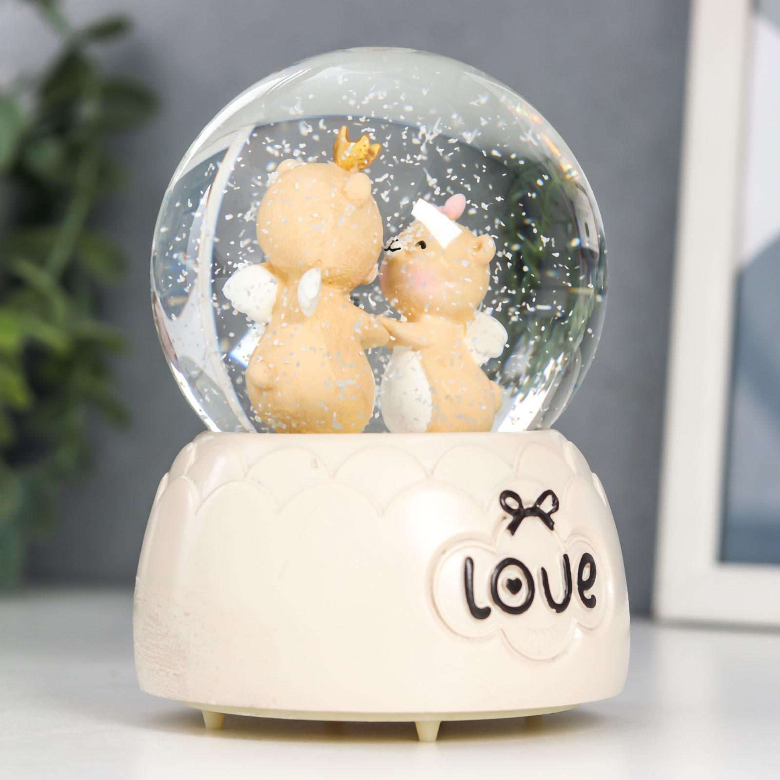 Стеклянный шар свет, музыка "Мишки с крыльями" d=8 см МИКС 12,5х8х8 см