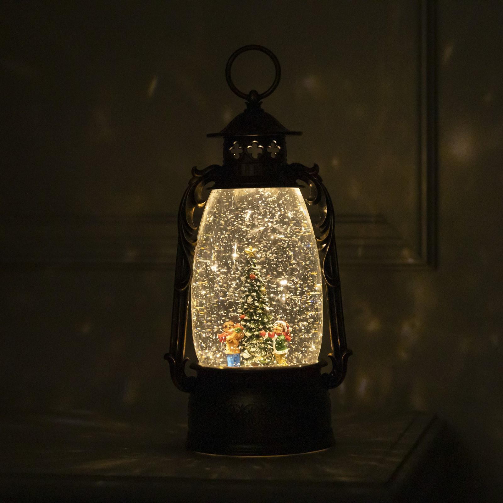 Светодиодная фигура «Фонарь с детьми и ёлкой» 15 × 30 × 12.5 см, пластик, батарейки ААх3 (не в комплекте), USB, свечение тёплое белое