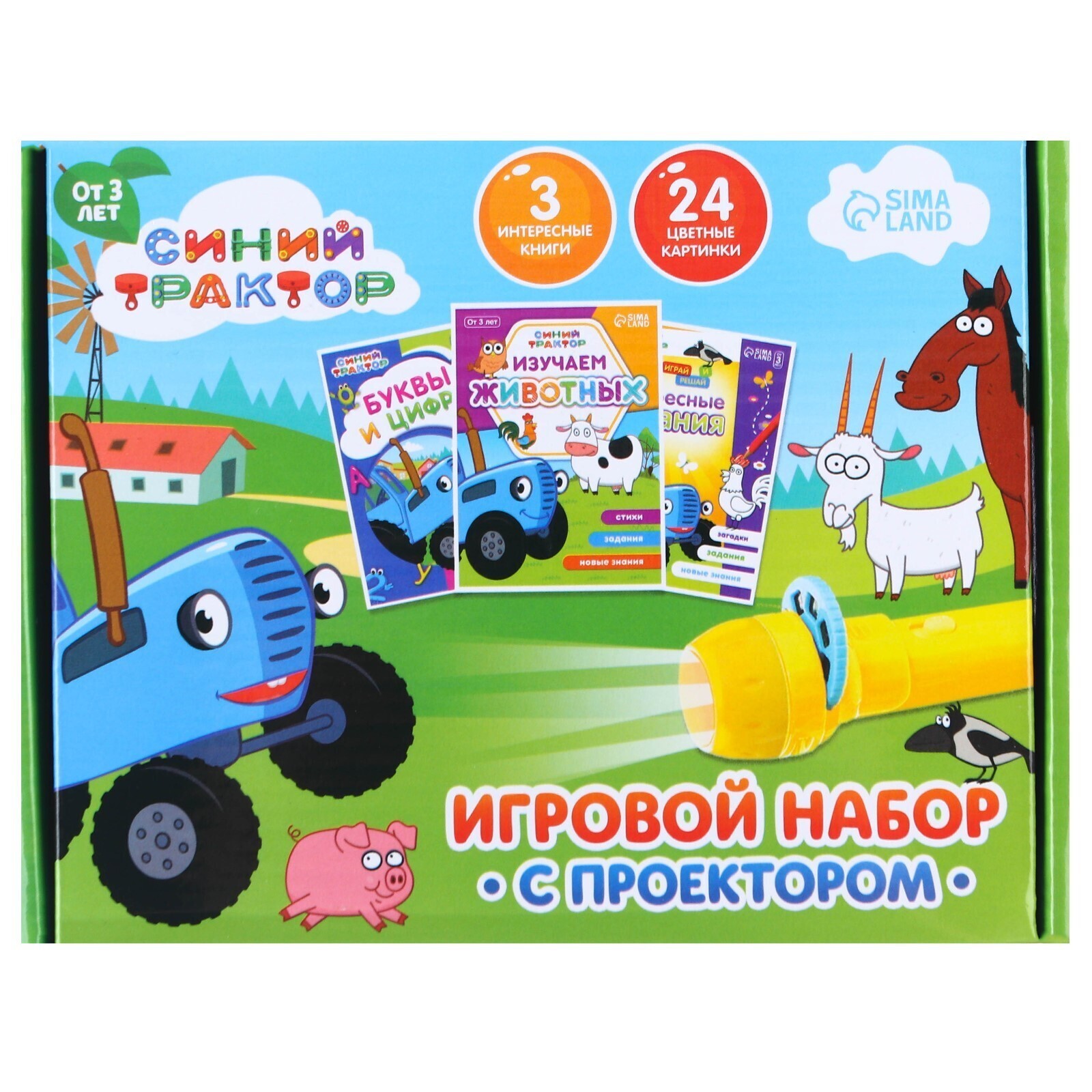 Игровой набор с проектором «Синий трактор», 3 книги