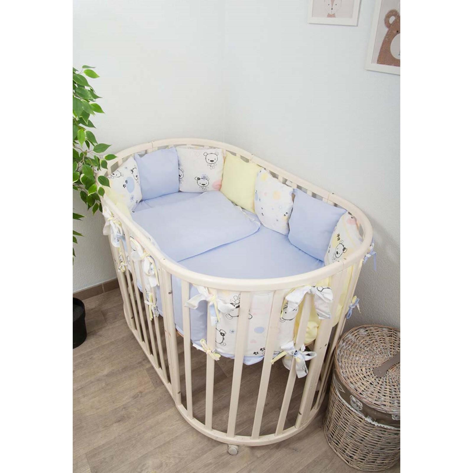 • Составляющие набора Бортик, Наволочка, Одеяло, Пододеяльник, Подушка, Простынь