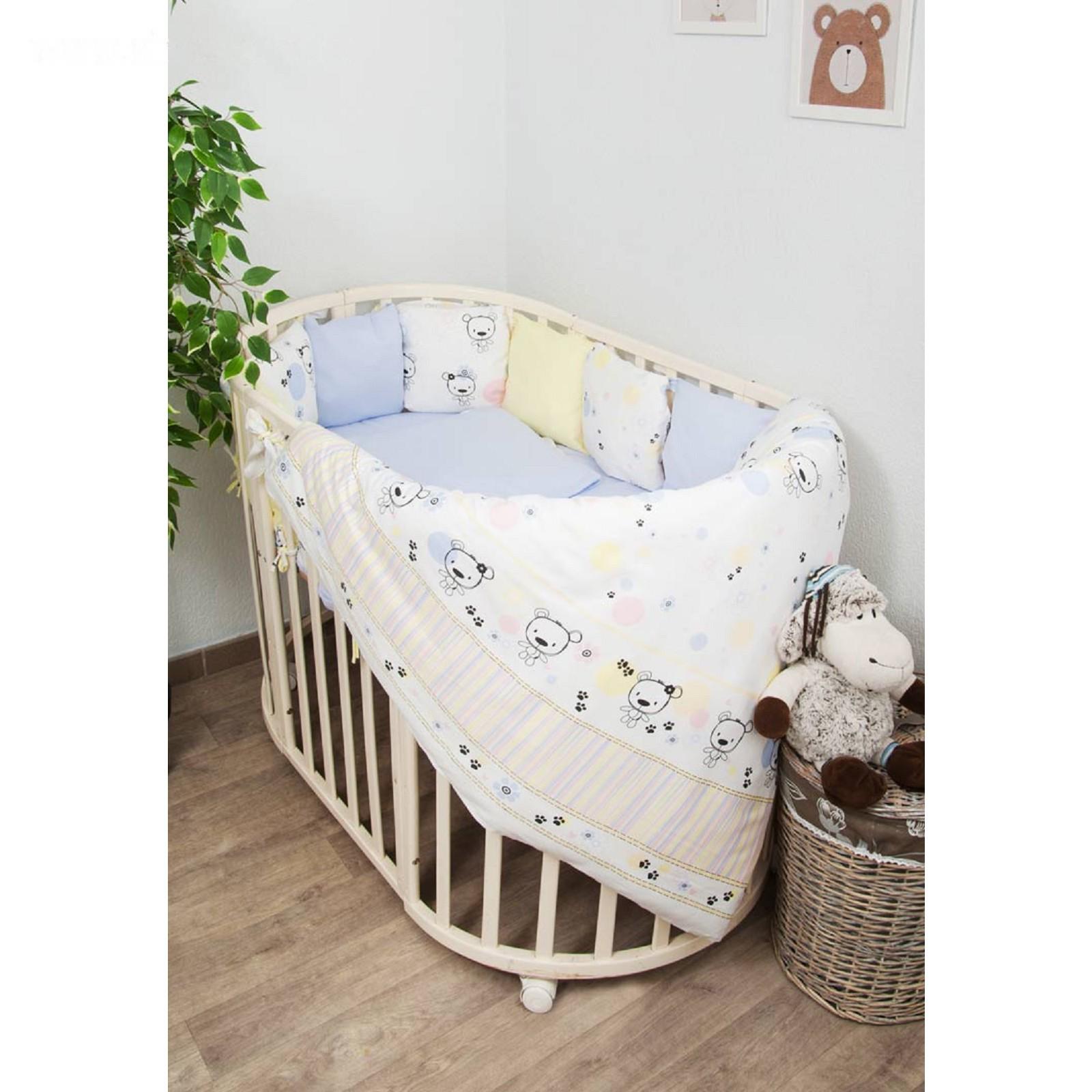 • Составляющие набора Бортик, Наволочка, Одеяло, Пододеяльник, Подушка, Простынь