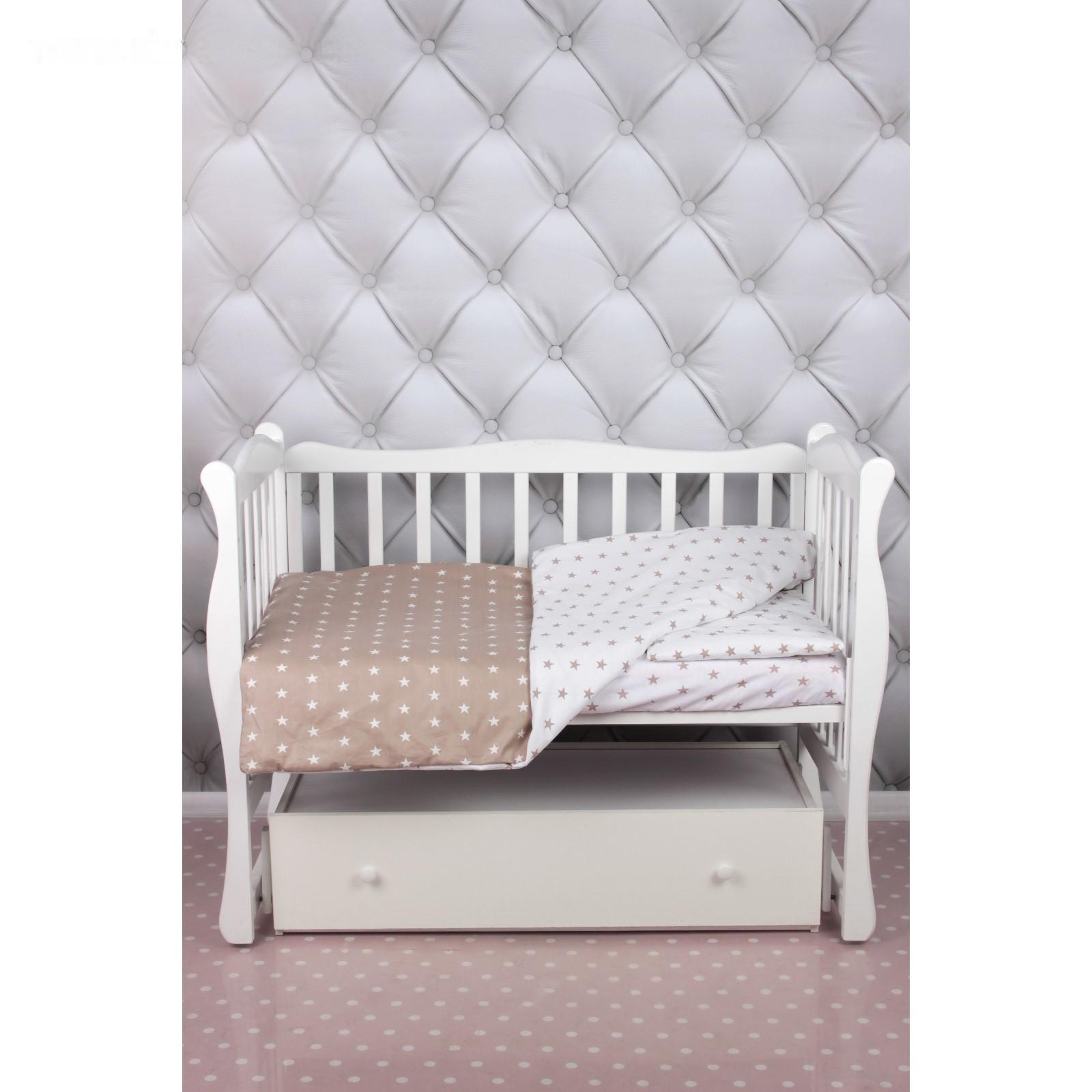 КПБ Baby Boom, размер 75х125 см, 112х147 см, 40х60 см, бязь, звёзды/коричневый