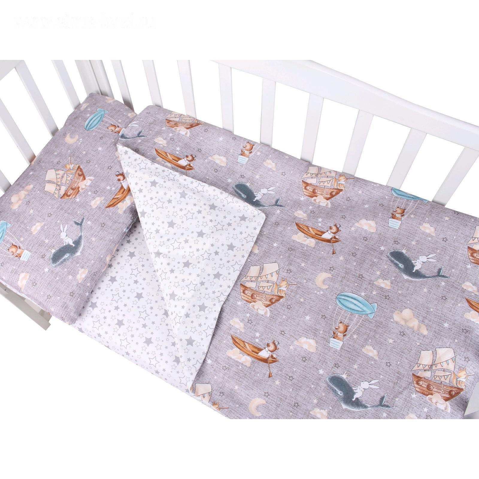 КПБ, размер 75 × 125 см, 112 × 147 см, 40×60 см, принт путешественники, бязь