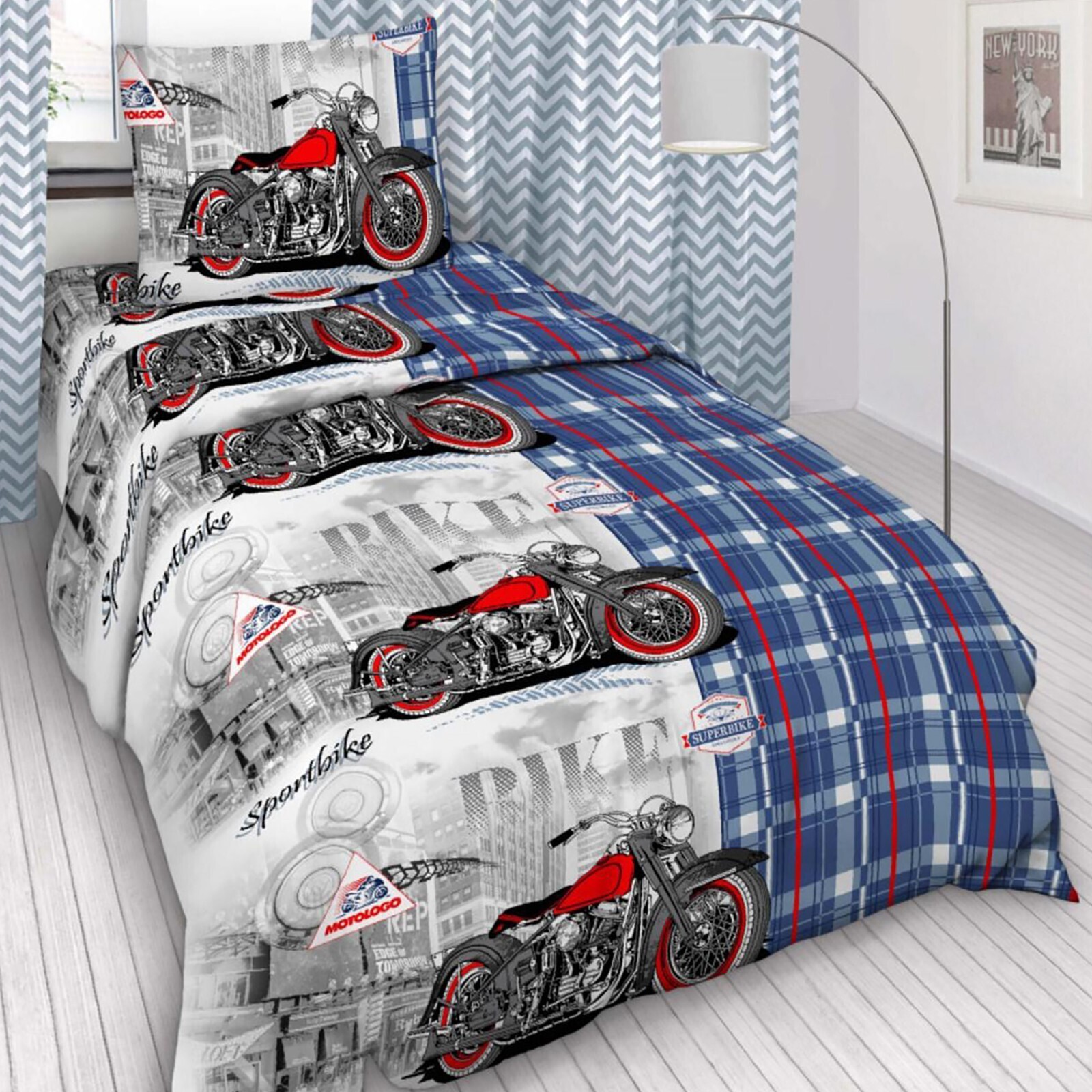 Постельное бельё 1,5 сп «Спортбайк», 147х210, 150х210, 50х70 см