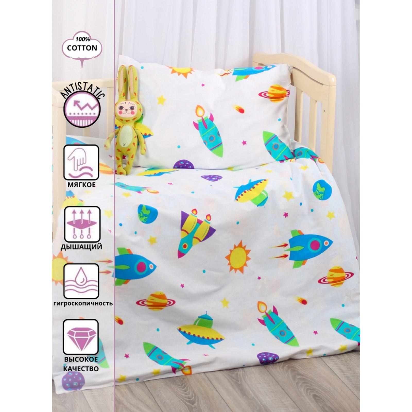Постельное бельё ясельное «Космос», размер 100х145 см, 110х145 см, 40х60 см