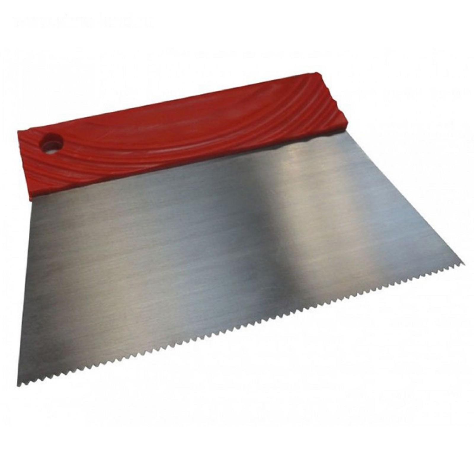 Способствует сокращению расхода клея. Трапециевидная форма шпателя обеспечивает быстрое нанесение и распределение клея по поверхности, что ускоряет рабочий процесс.