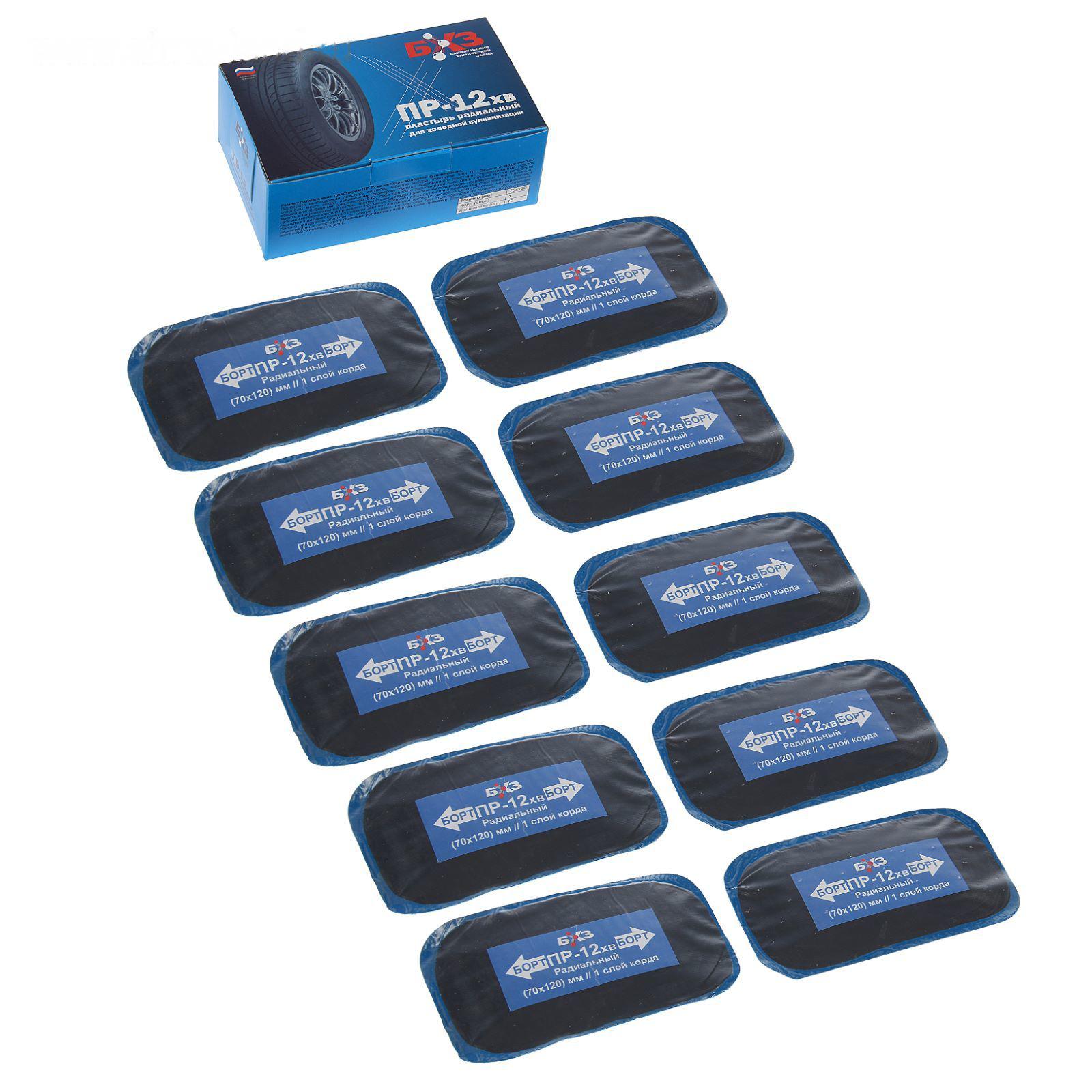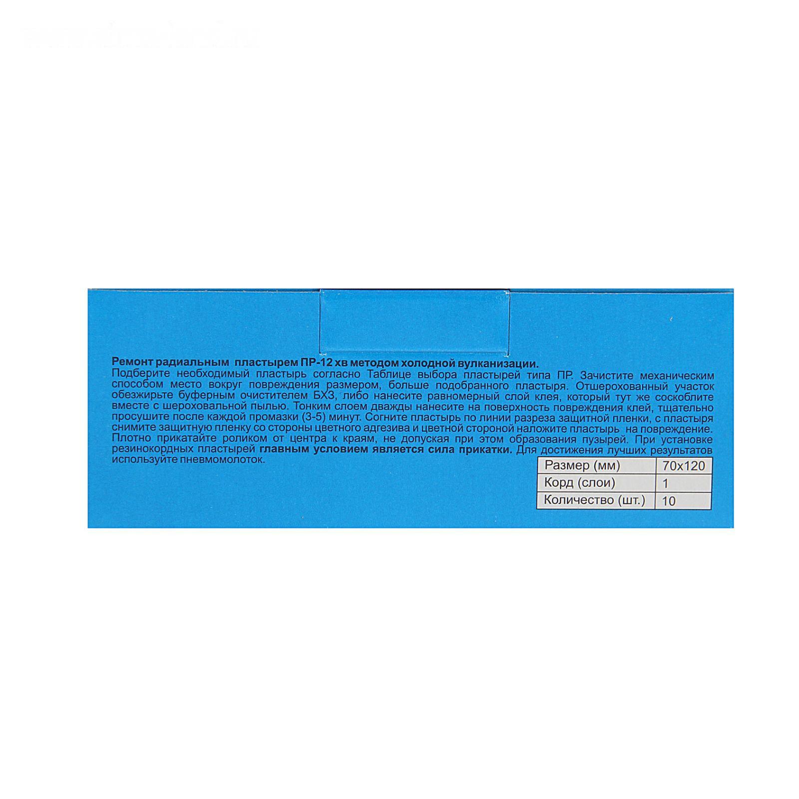 Пластырь резинокордный ПР-12 х.в, для радиальных шин, 70x120 мм, 1 слой корда, набор 10 шт.