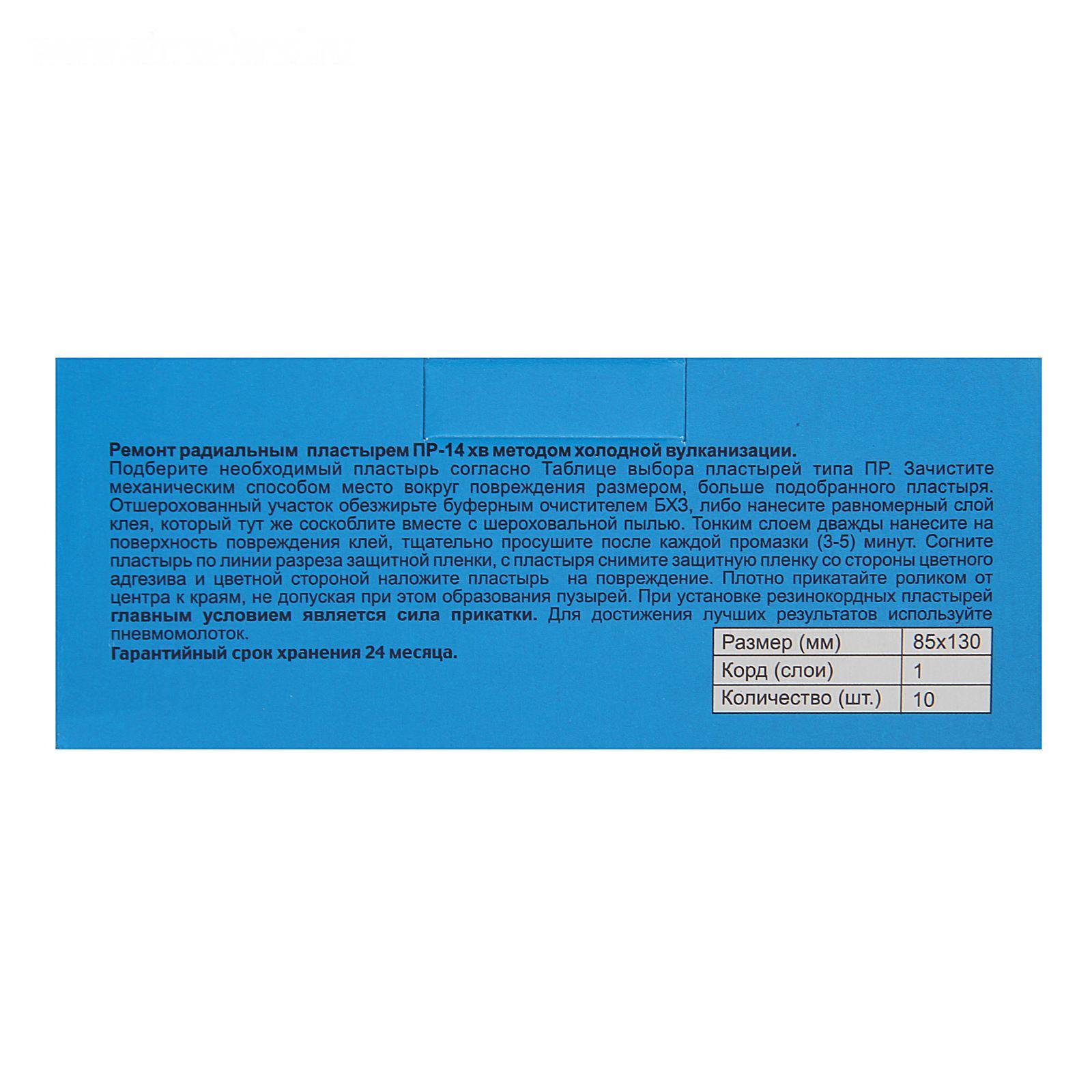 Пластырь резинокордный ПР-14 х.в, для радиальных шин, 85x130 мм, 1 слой, набор 10 шт