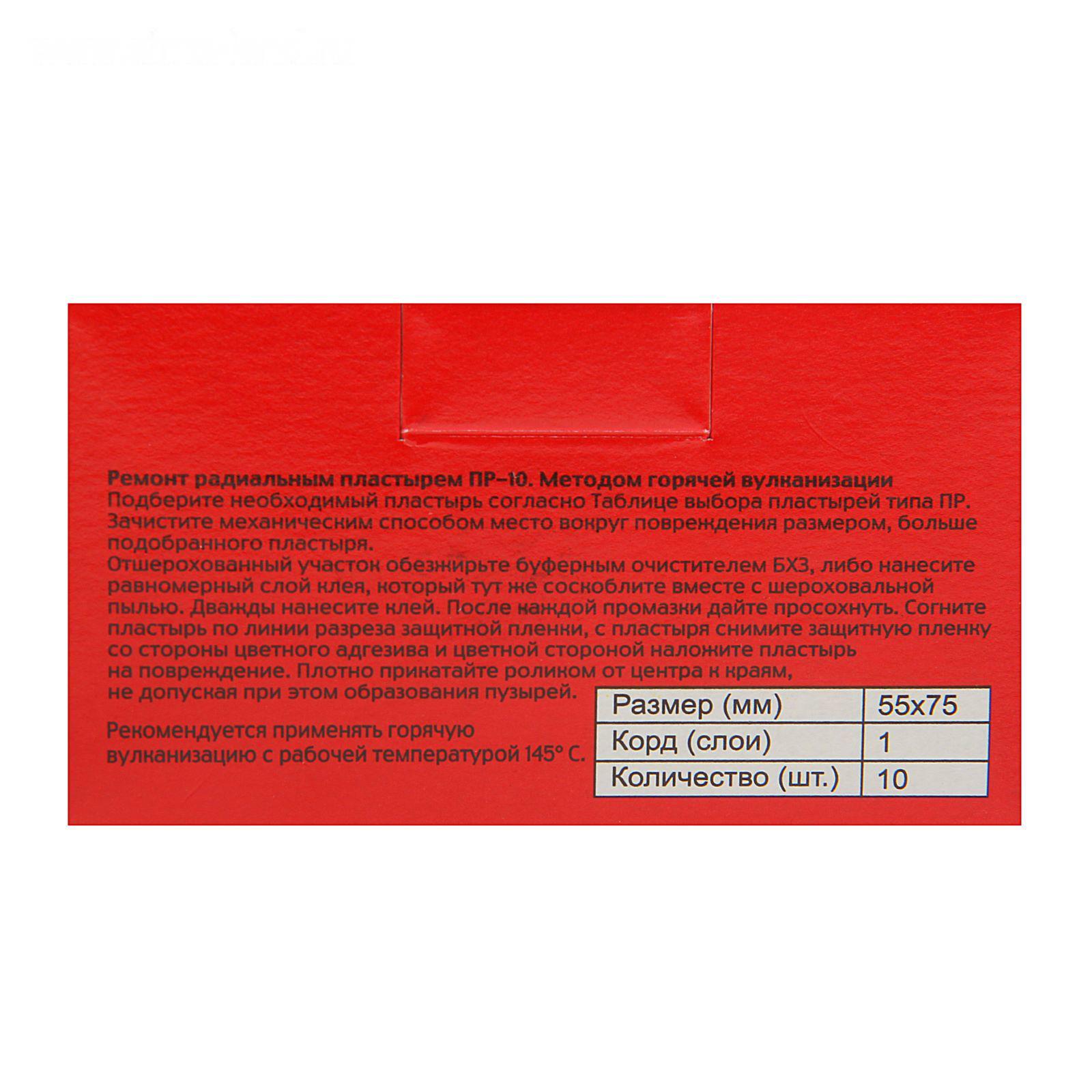 Пластырь резинокордный ПР-10, для радиальных шин, 55x75 мм, 1 слой, набор 10 шт