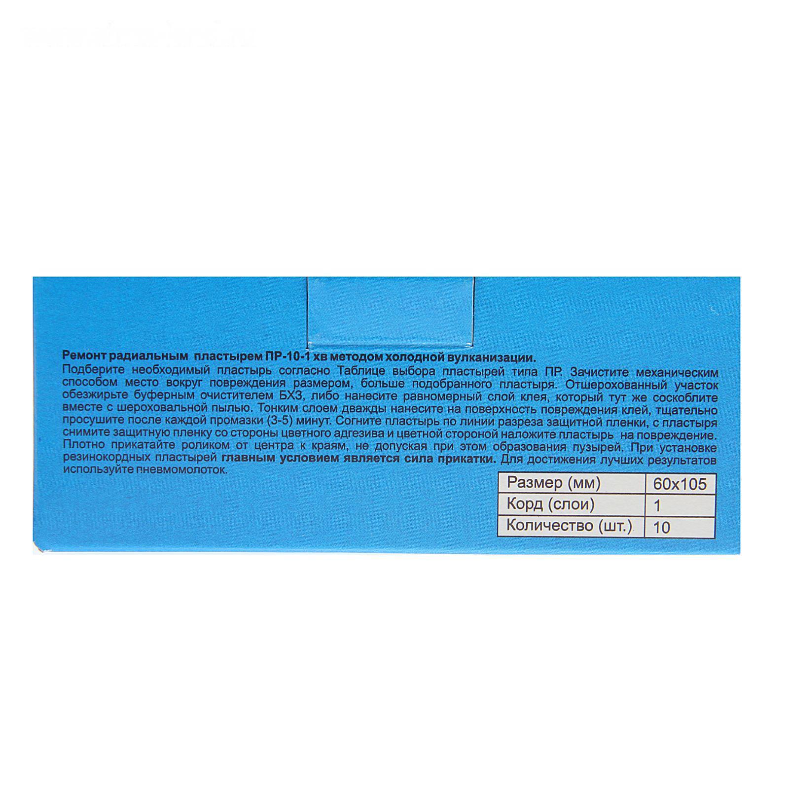 Пластырь резинокордный ПР-10-1 х.в,для радиальных шин,60x105 мм,1 слой корда,набор 10 шт