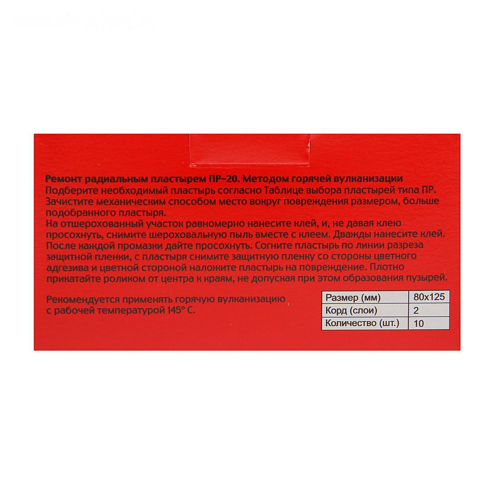 Пластырь резинокордный ПР-20, для радиальных шин, 80x125 мм, 2 слоя корда, набор 10 шт.