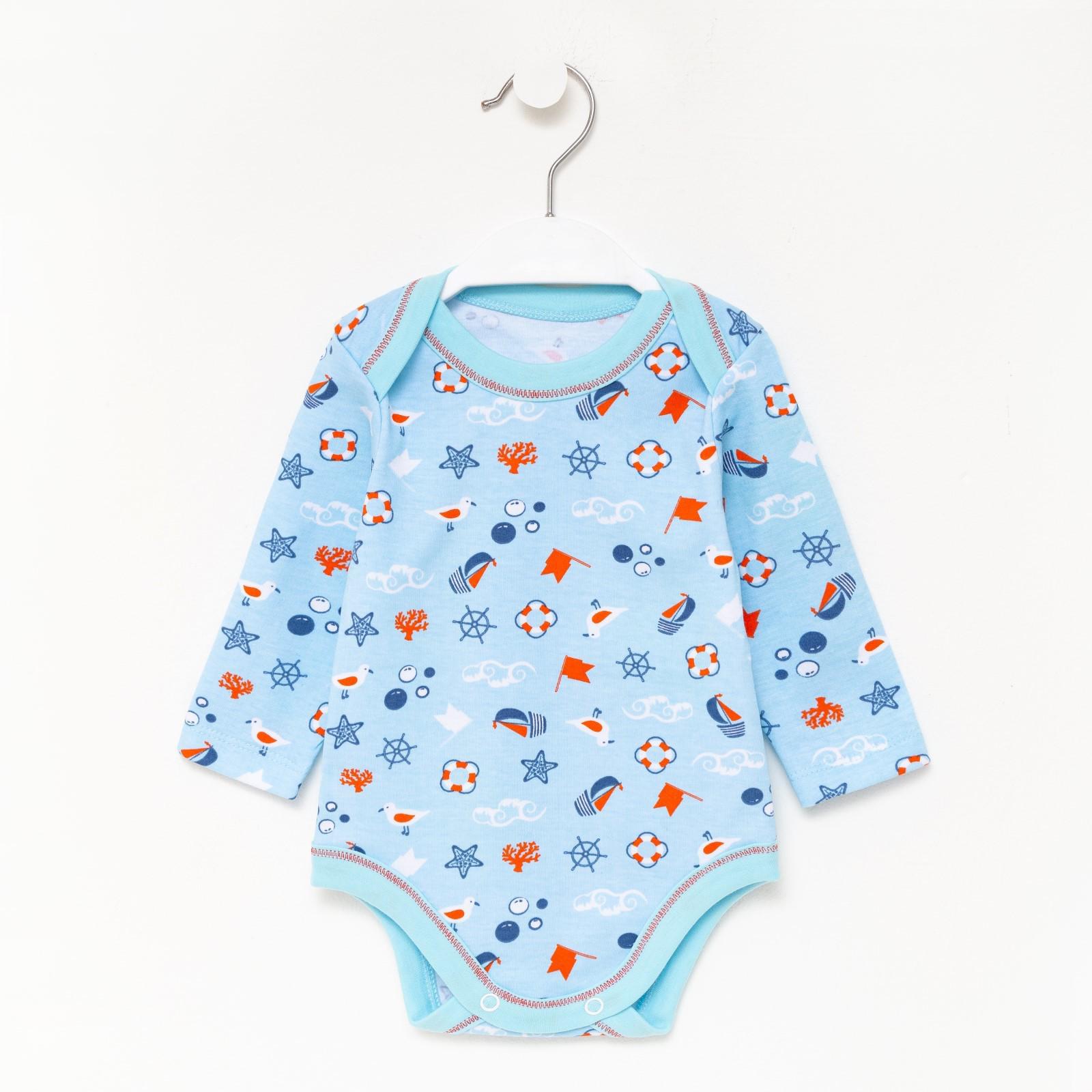 Боди детское «Полоска с якорем», цвет голубой, рост 62 см