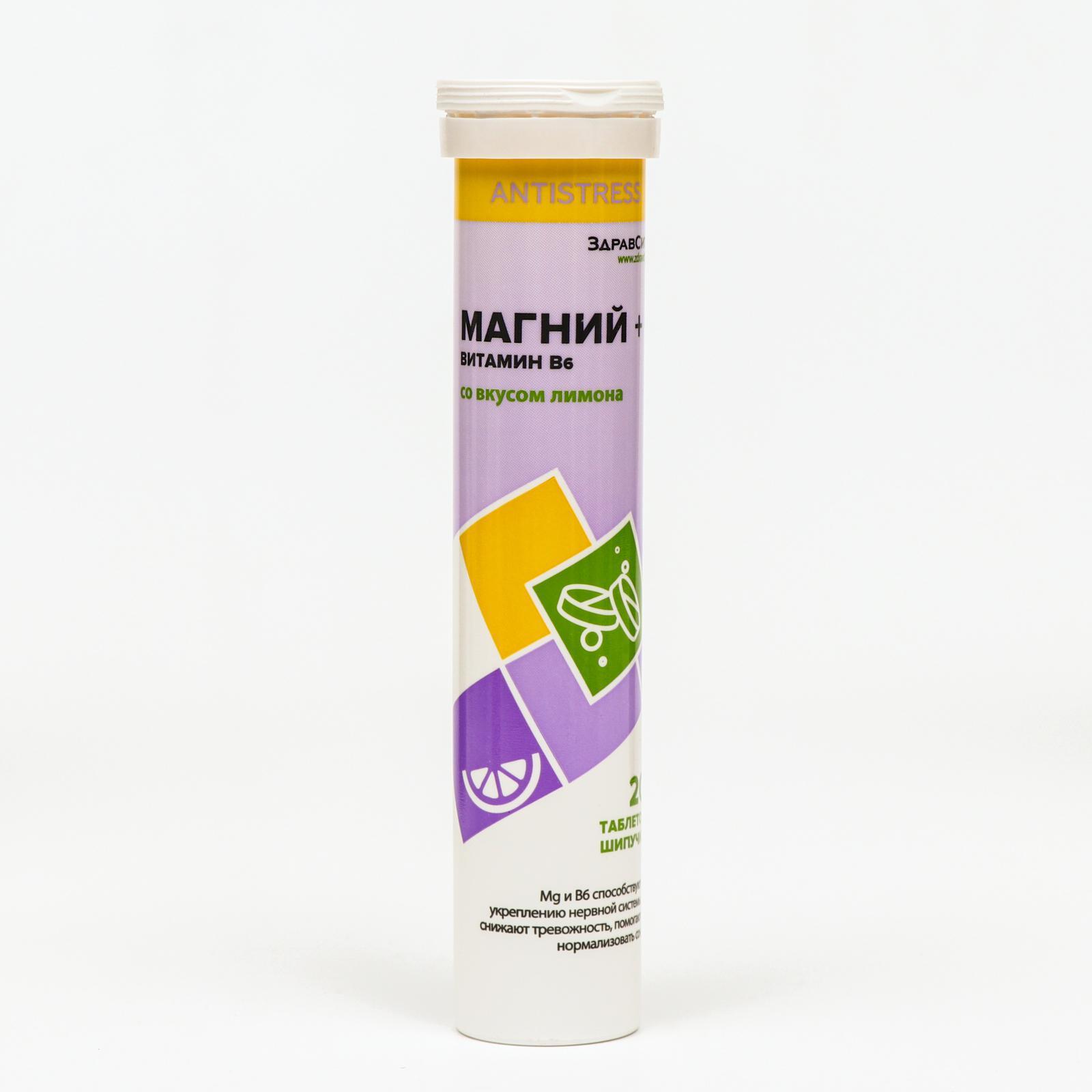 Комплекс магний + витамин B6 Здравсити со вкусом лимона 20 шипучих таблеток по 4 г