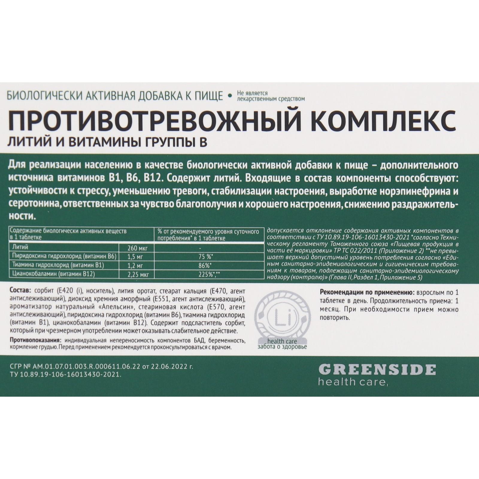 Комплекс противотревожный с литием, 30 таблеток, 600 мг