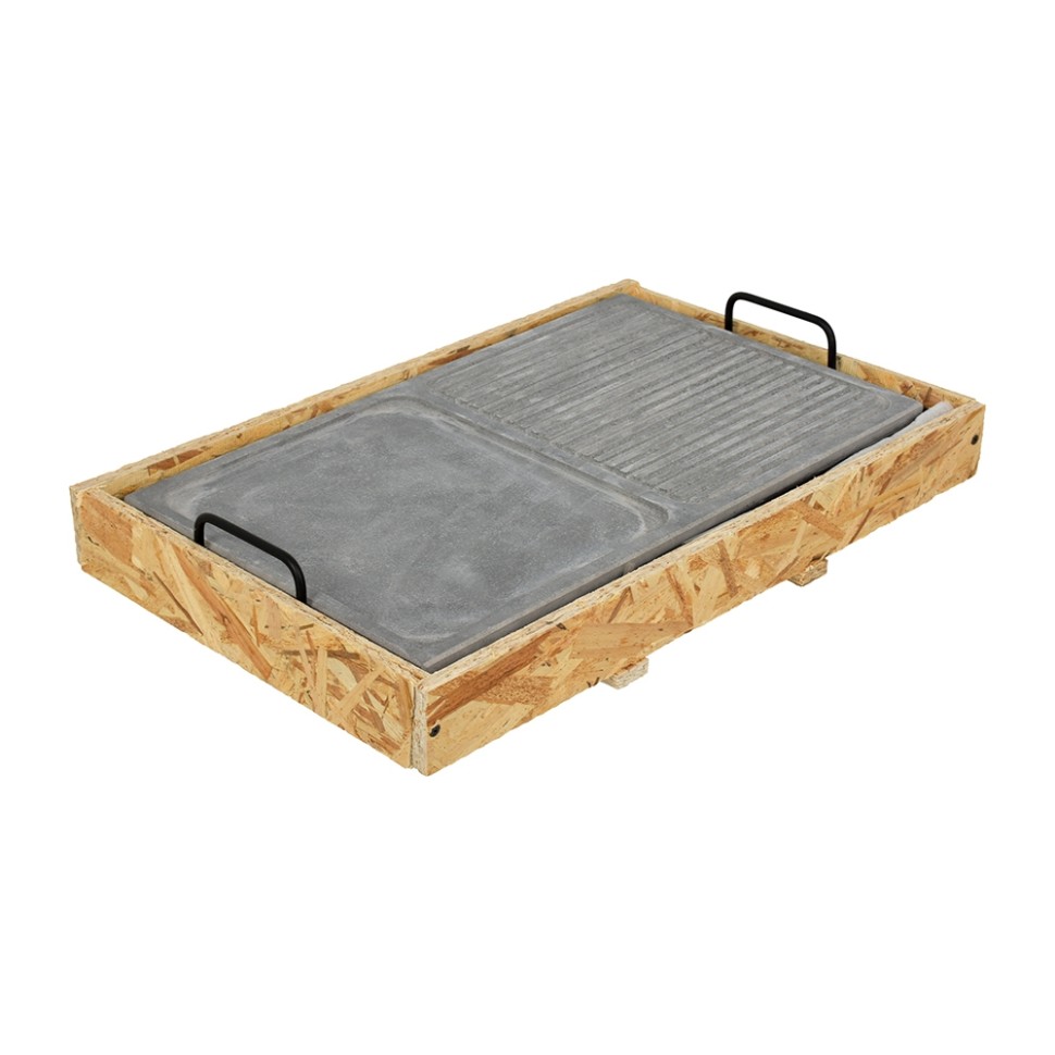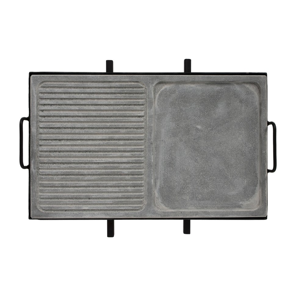 Камень с выемкой для жарки и гриль зоной. Вулканический камень с двумя зонами для приготовления. Универсальное и компактное решение.