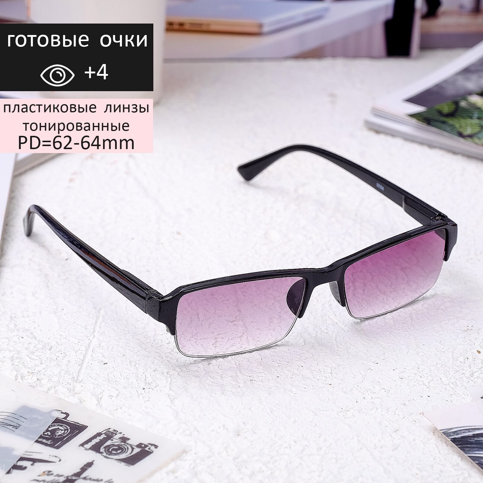 Очки корригирующие 0056, цвет чёрный, тонированные, отгибающаяся дужка, +4