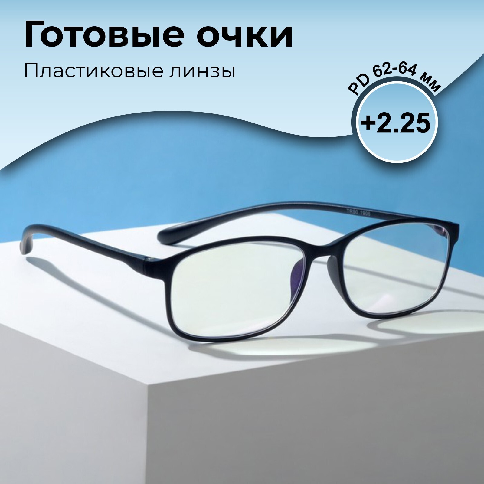 Очки корригирующие TR90-1906, цвет чёрный, +2.25