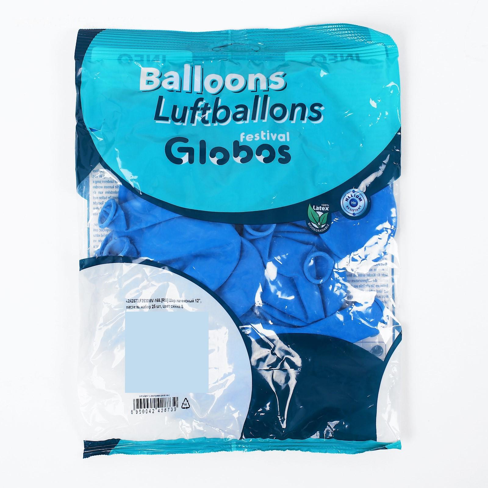Шар латексный 12", пастель, набор 25 шт., цвет синий