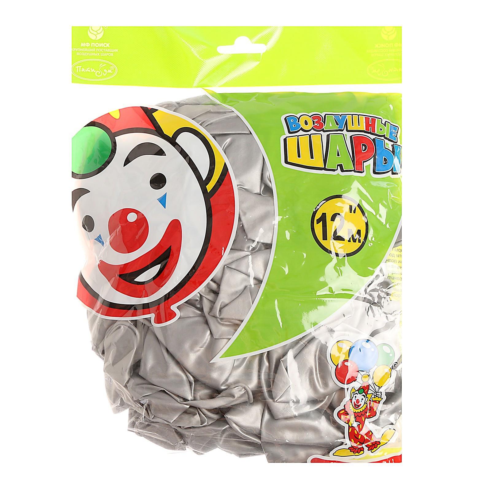 Шар латексный 12", металлик, набор 100 шт., цвет серебряный