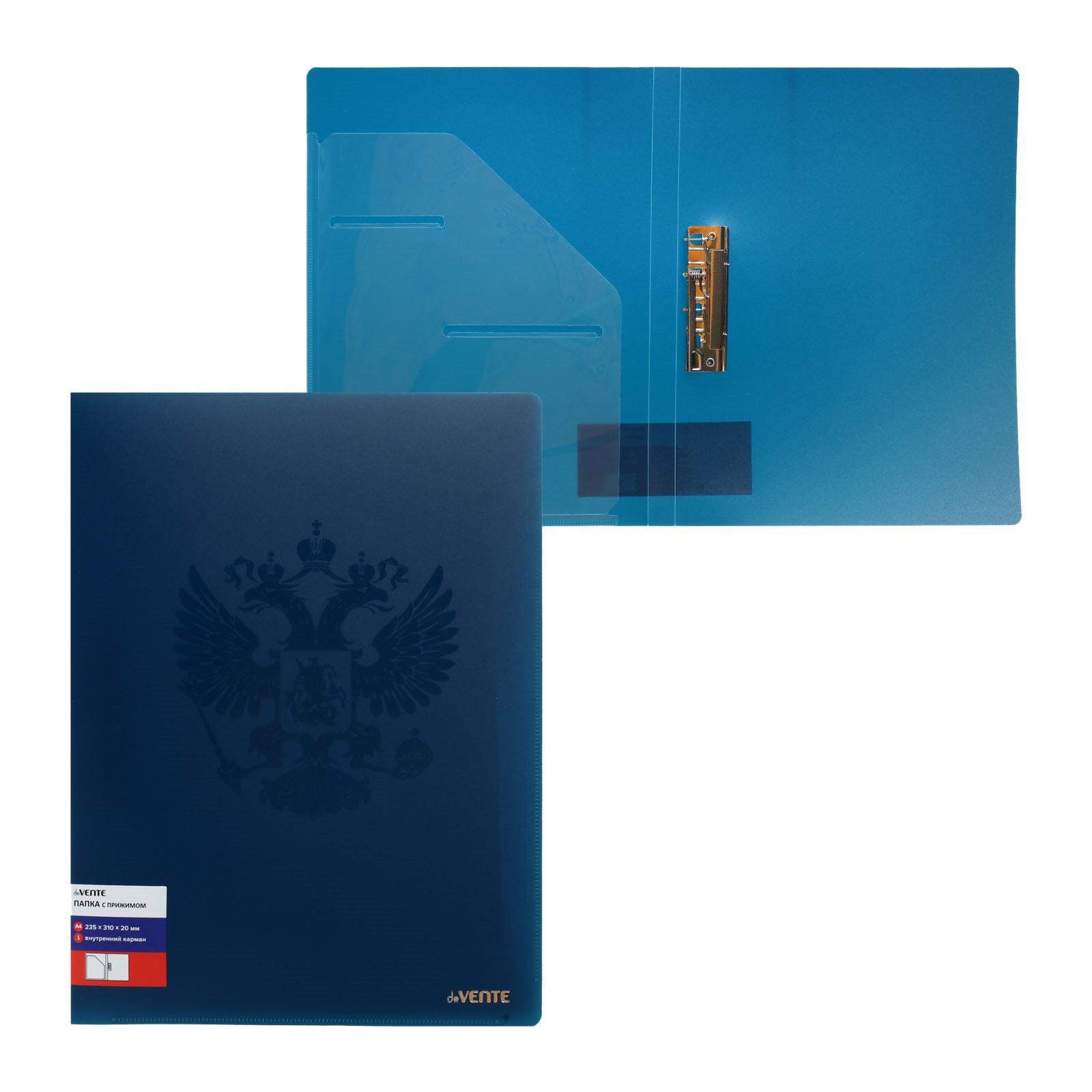 Папка с зажимом А4 deVENTE, 500 мкм, "Герб", фактура "песок", внутренний карман, выборочный лак, тёмно-синяя